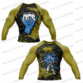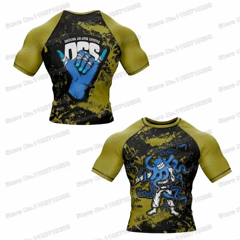 Octopus Guard Shirts WWF Rash Guards Surfing Jersey Beach Shirts Swimwear Diving Gym Shorts MMA BJJ Men Jiu Jitsu Fitness Sets