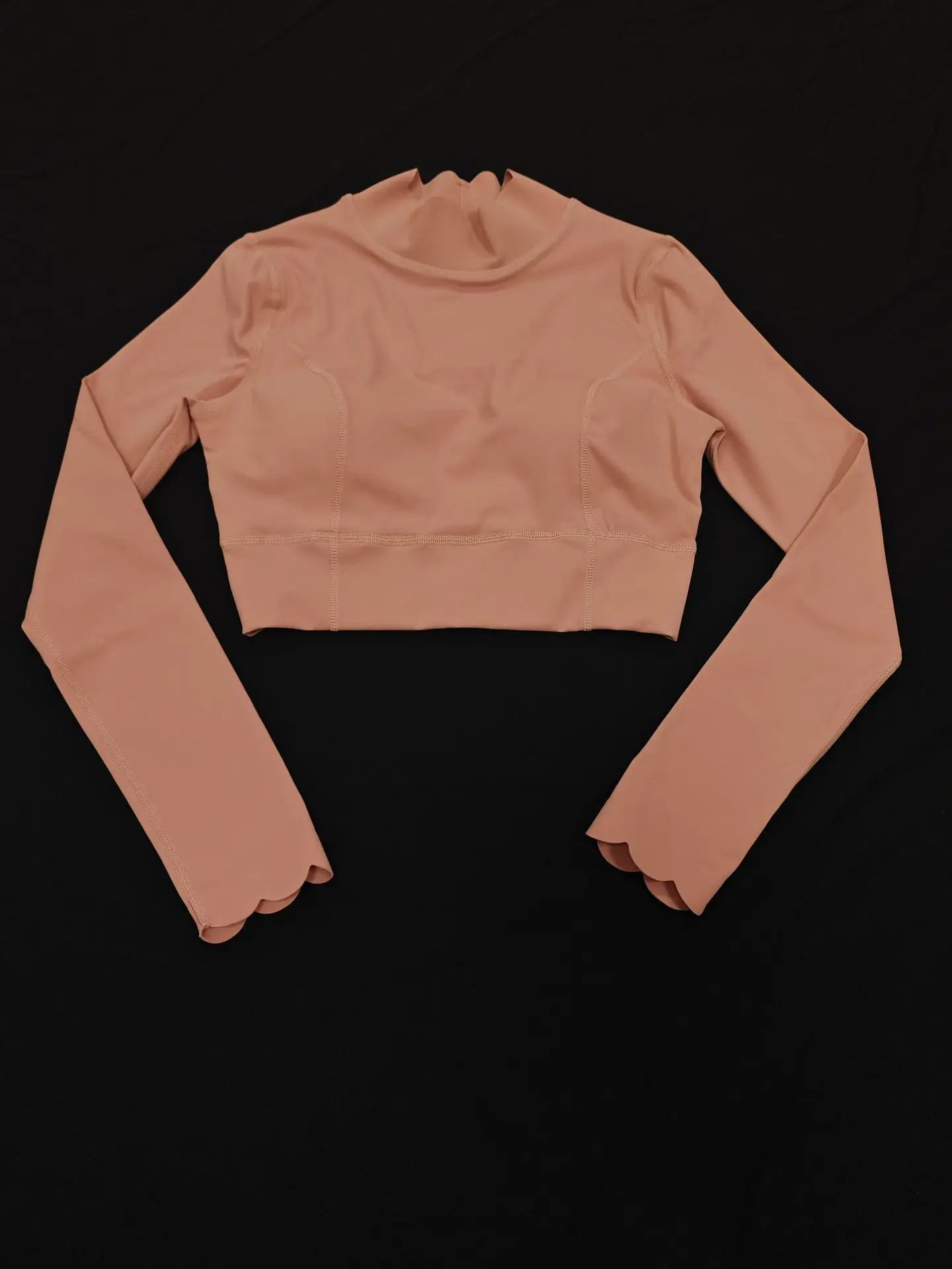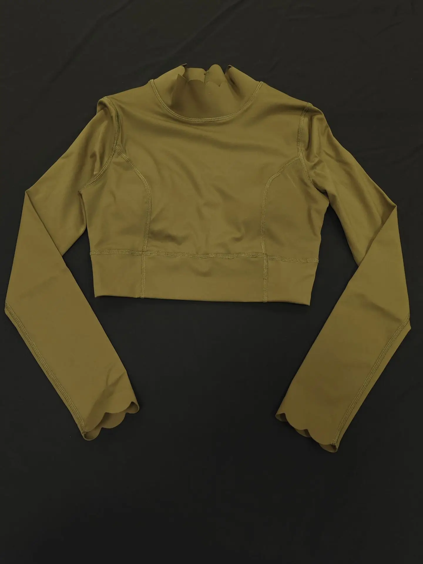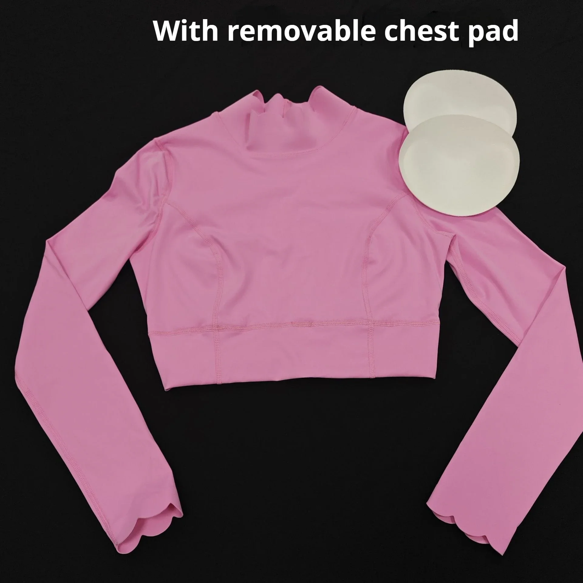 Shell Lace Backless Yoga Clothes Long Sleeve Tight Slimming Sports Running Leggings Workout Training Top with Chest Pad