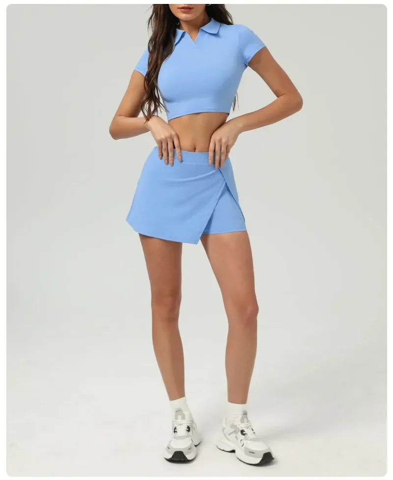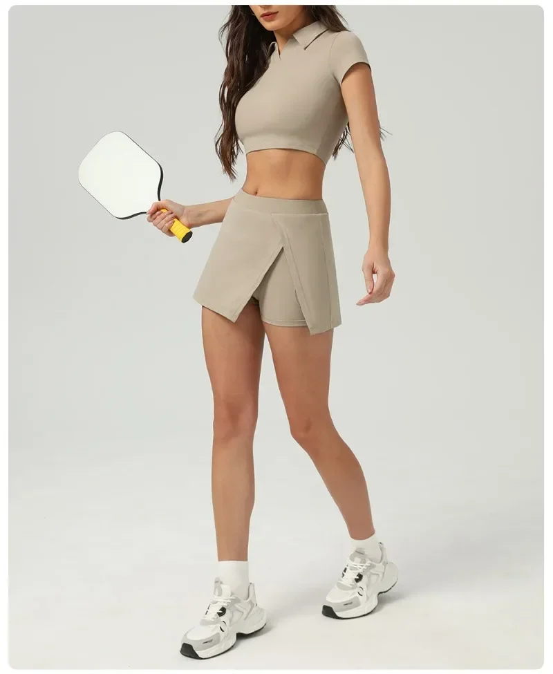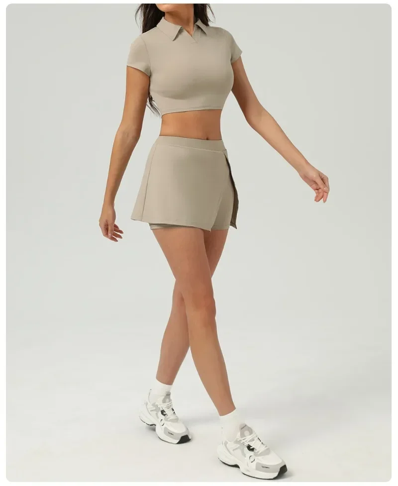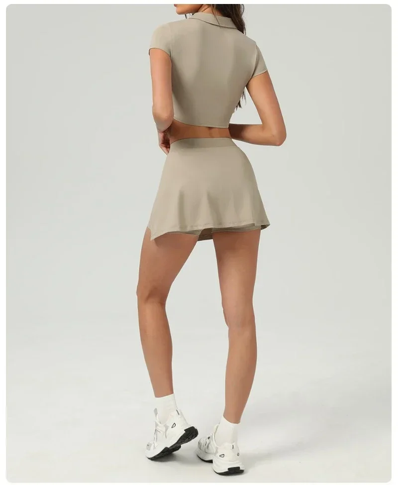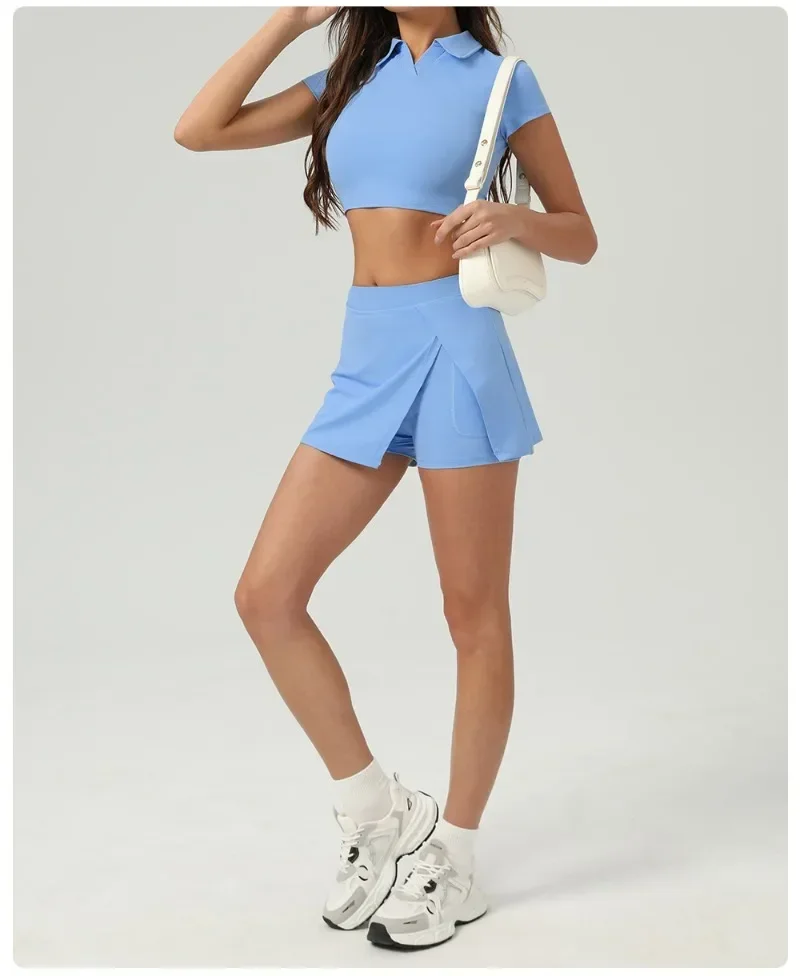 Tennis Skirt Sports Fitness High Waist Nude Breathable Golf Tennis Badminton Running Workout Clothing Gym Yoga Suits for Women