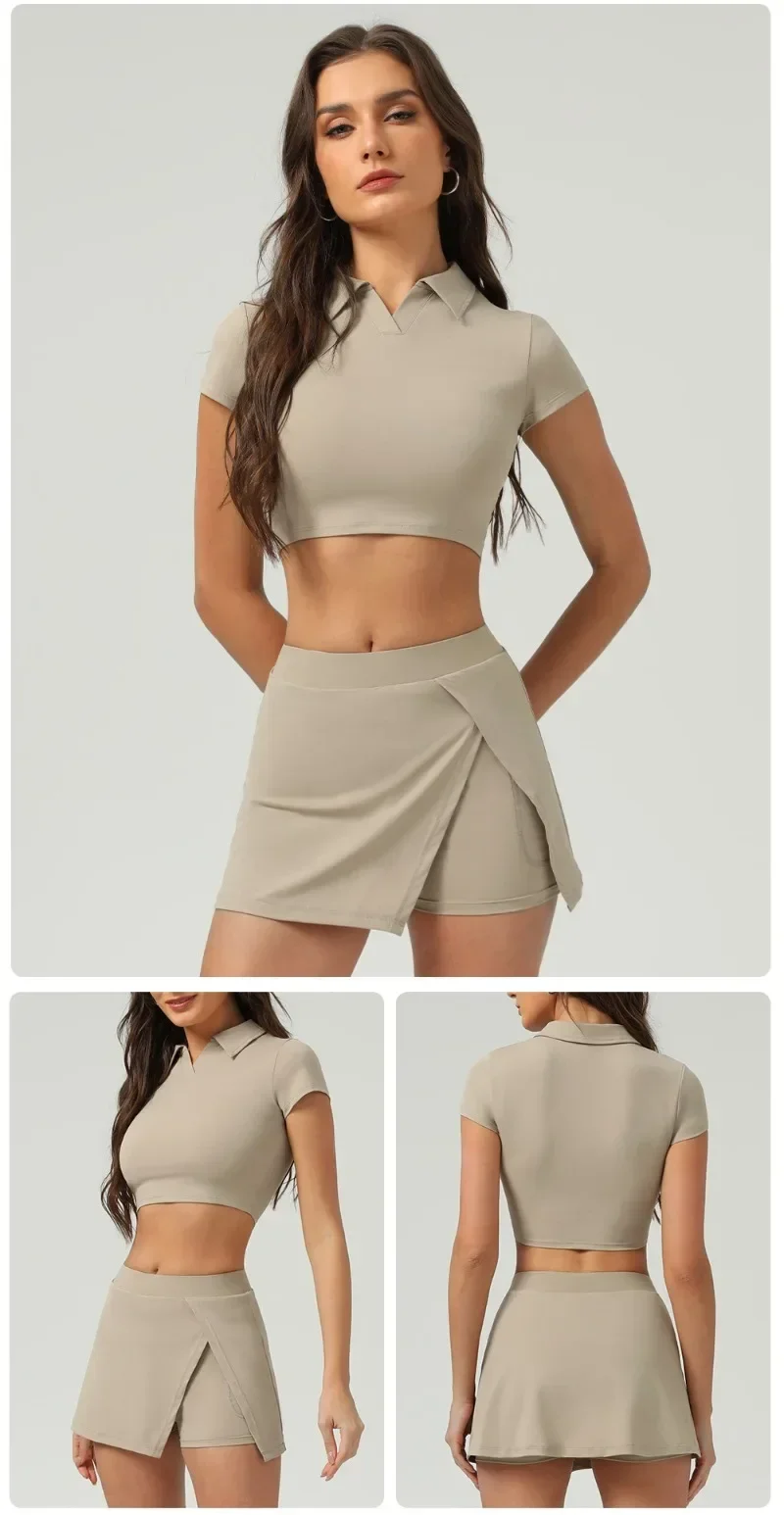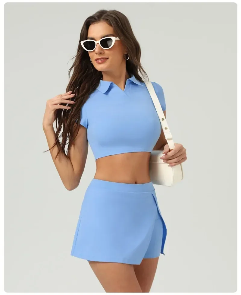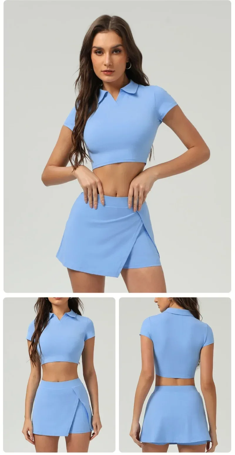 Tennis Skirt Sports Fitness High Waist Nude Breathable Golf Tennis Badminton Running Workout Clothing Gym Yoga Suits for Women