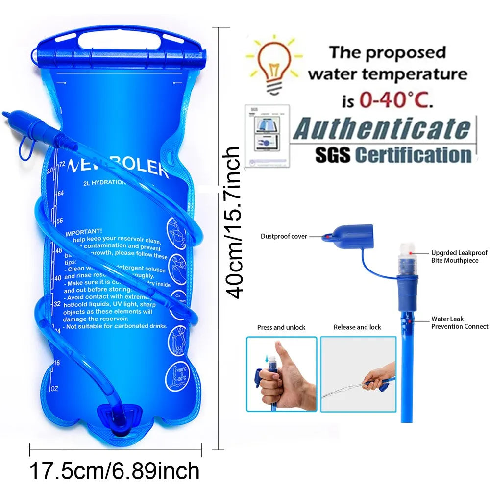 • 2L Water Bag :The 2L water bag attached to the backpack provides ample water storage, ensuring you remain hydrated even in challenging environments.