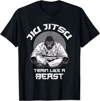 Train like a Beast Jiu Jitsu, BJJ Grappling MMA Gorilla T-Shirt Graphic T Shirts Men Clothing Tops Camisetas