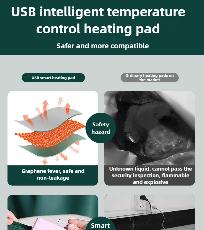 1. This hand warmer uses graphene to generate heat, does not fill with water, does not carry electricity, and is safer and risk-free to use.