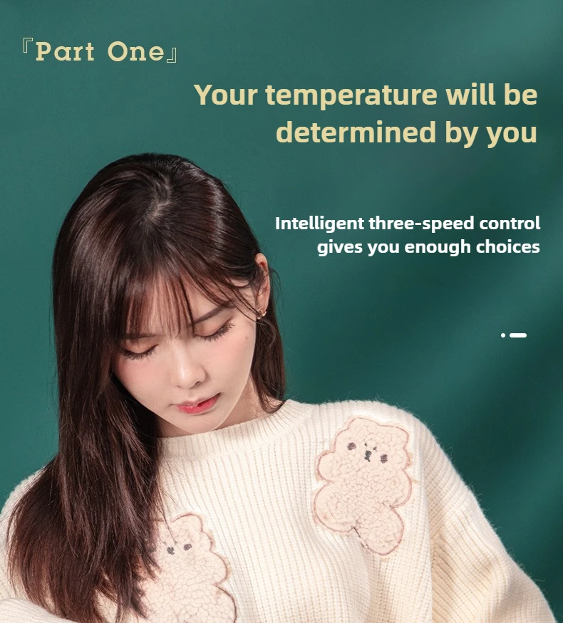 3. 1 minute rapid heating, intelligent three-level temperature control: red light on 60°, green light on 50°,blue light on 40°, you can choose the most comfortable temperature as you like.