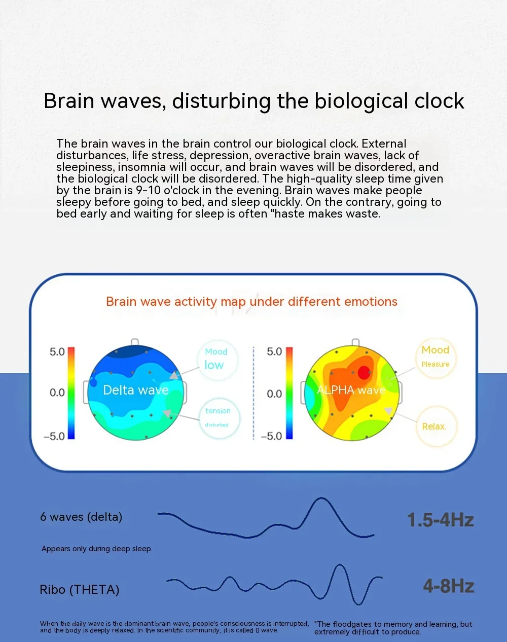 5. By sending low-frequency pulses of a specific frequency to the target area of the brain responsible for endorphin release, the smart sleep instrument performs neuromodulation and reaches the higher center of the cerebral cortex through the supracomtrum nerve, they will regulate signals from various biological and physical channels, activate the human endorphin system, and help the body restore sleep function.