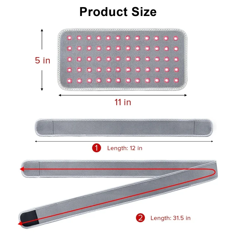 【 Medical Red & Infrared Lights】The Red Light Therapy Belt features 60PCS 660nm red lights and 148PCS 830-880nm infrared lights. 660nm red light promotes metabolism, improves blood circulation and relieves pain, while 830-880nm infrared light penetrates deep into subcutaneous tissues and muscles to relieve joint pain and inflammation.