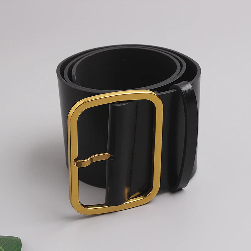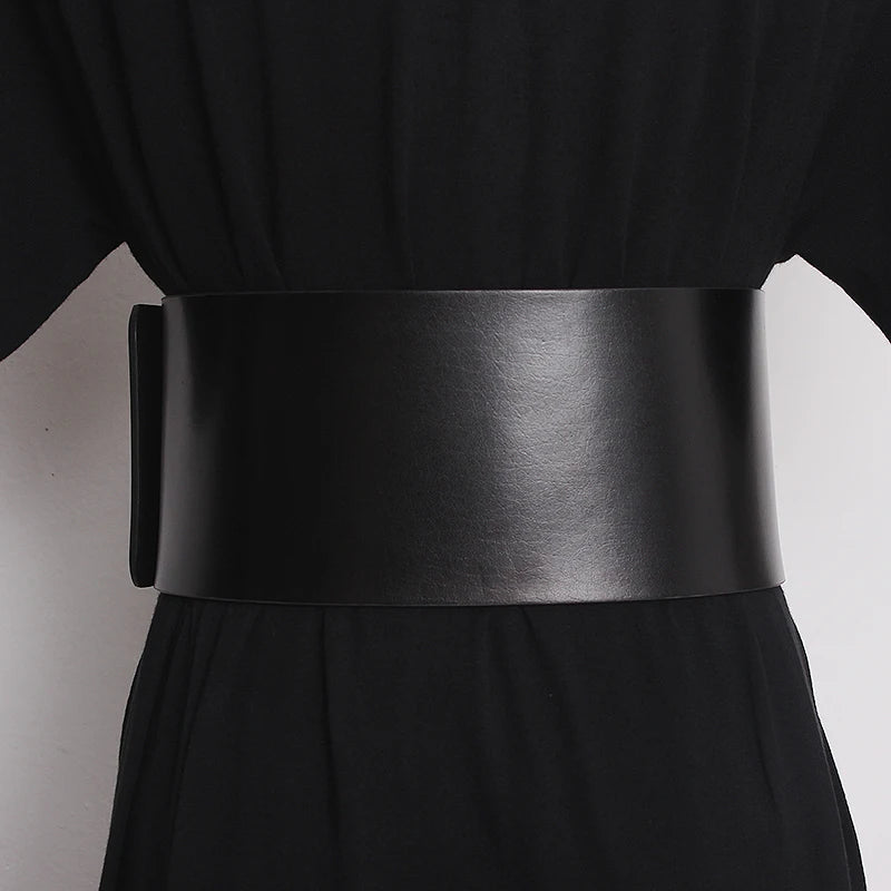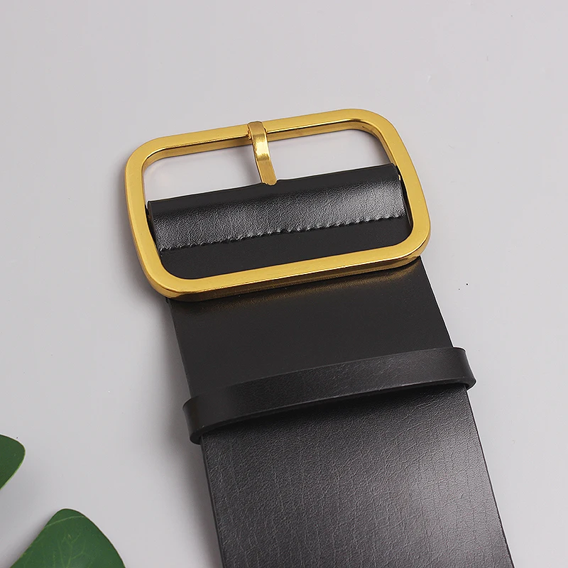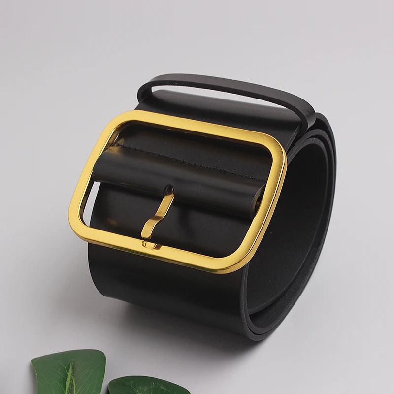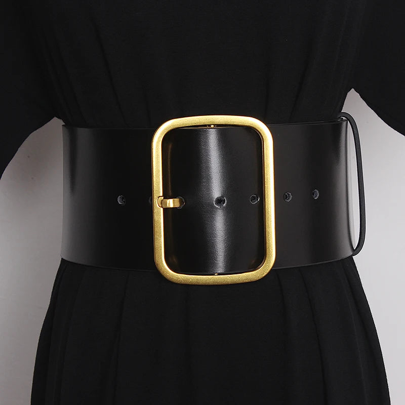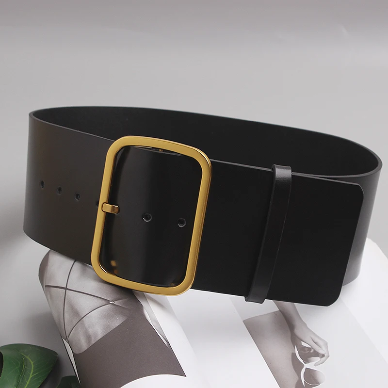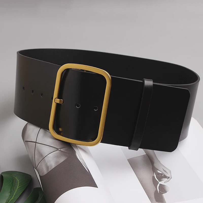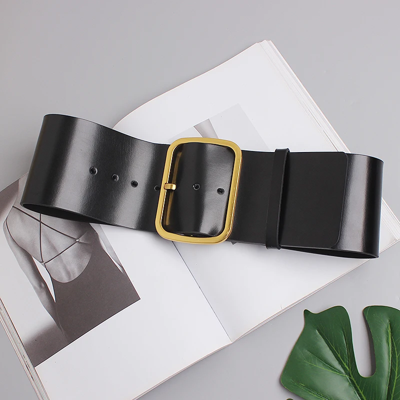 2022 9.5Cm Wide Cowhide Waistband Metal Buckle Waist Belt Black Plain Genuine Leather Coat Dress Female Cinture Commerbund Belt
