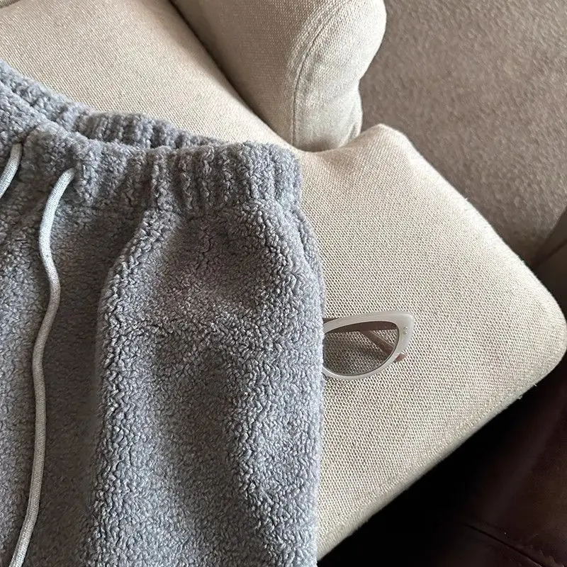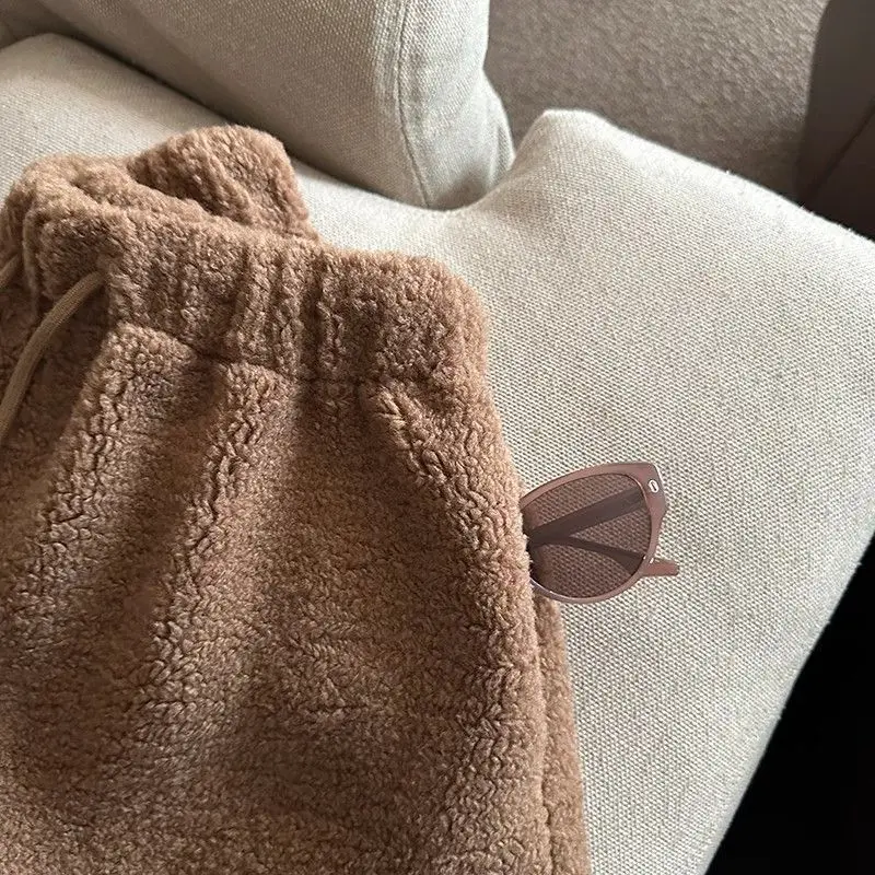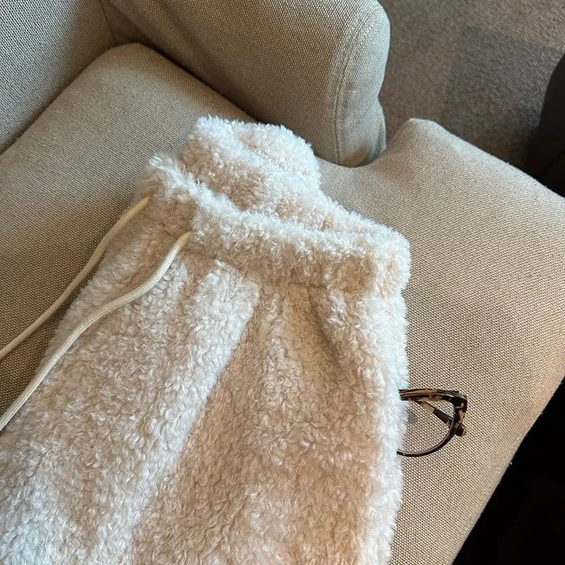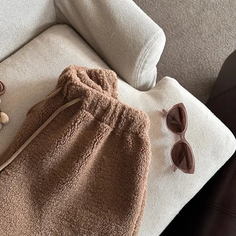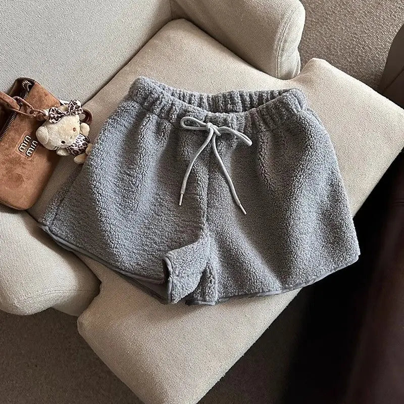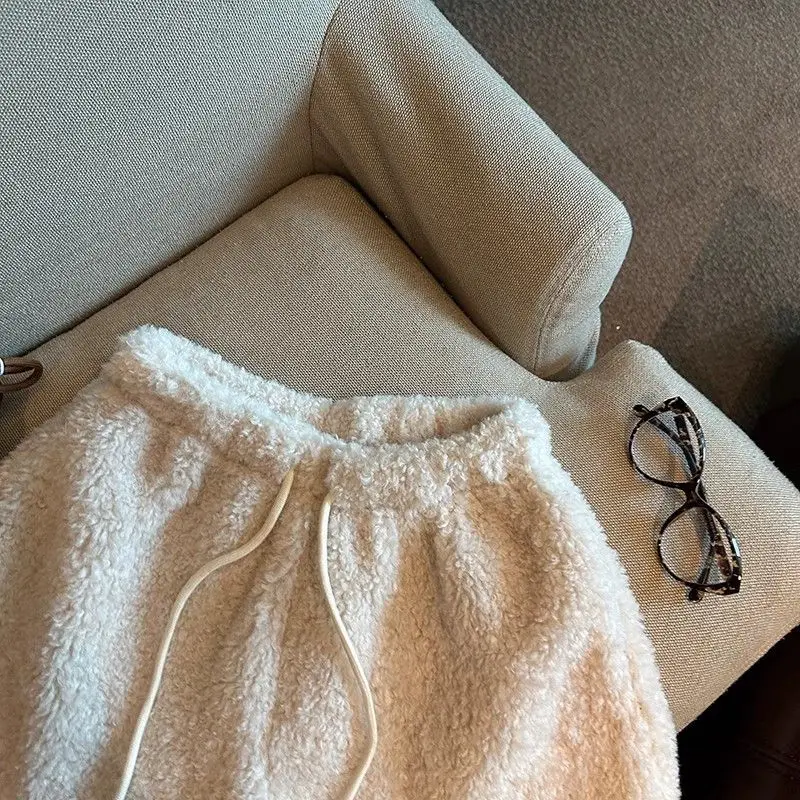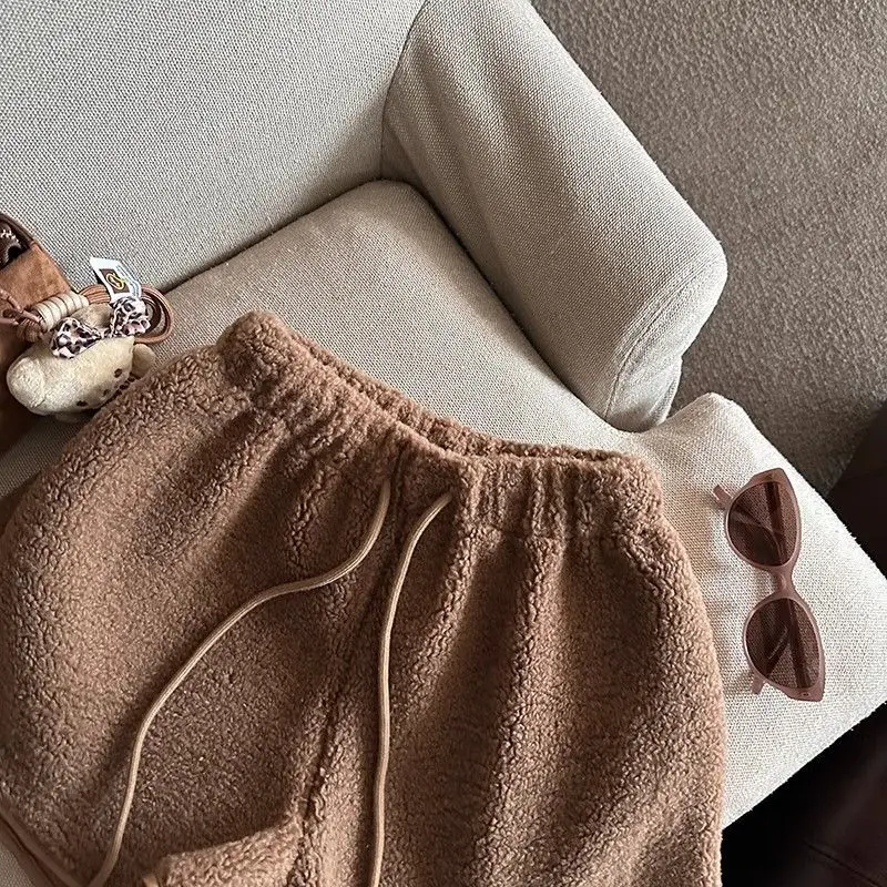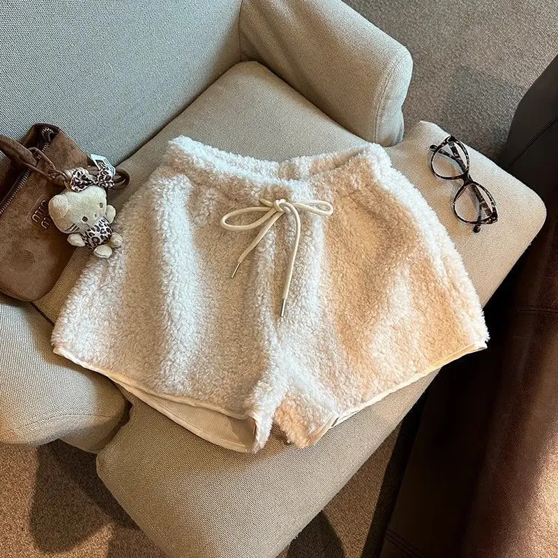 2025 Korean Style High Waist Lamb Velvet Short Pants Women'S Autumn Winter A- Line Slimming Wide Leg Warm Plush Boot Pants