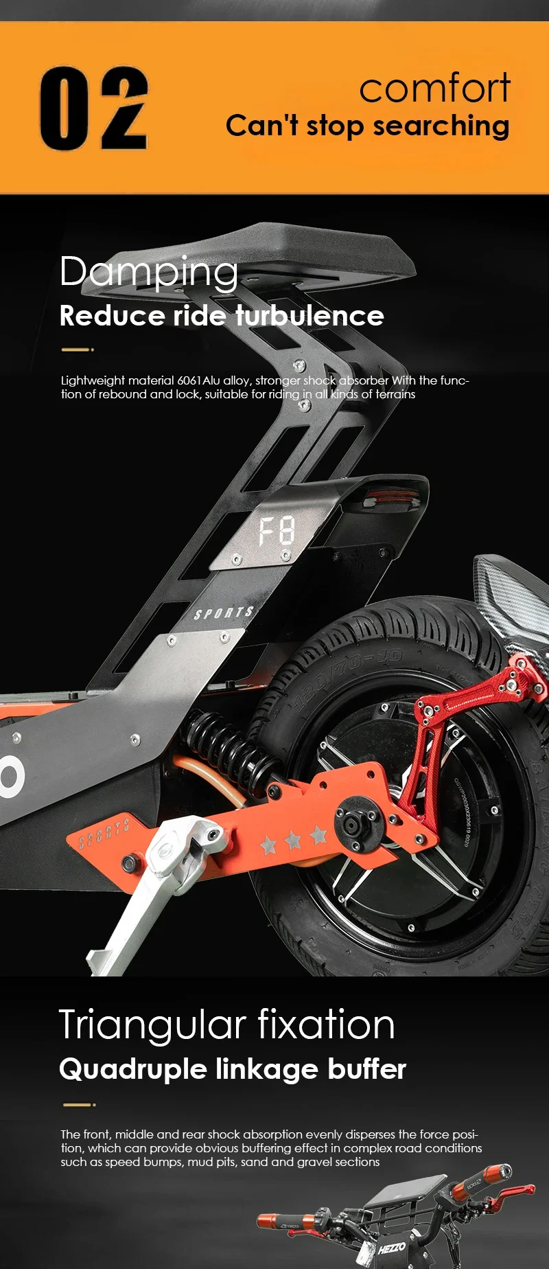 72V 10Kw 100Km/H 50Ah 150Km 16-Inch Off-Road Scooter Foldable with Seat F8 Electric Scooter