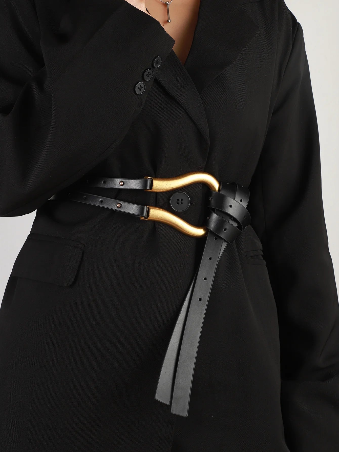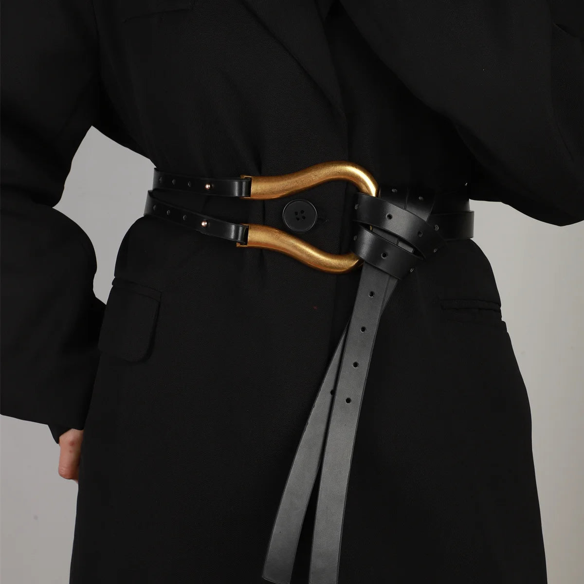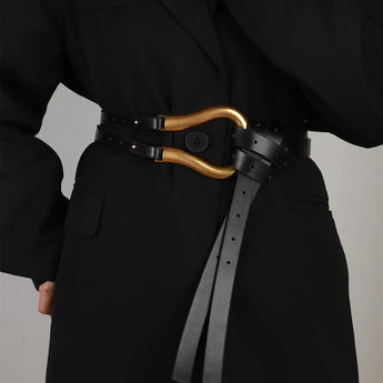 A Woman'S Suit Belt with a Wide Waistband Large Horseshoe Button Decoration with Skirt Belt