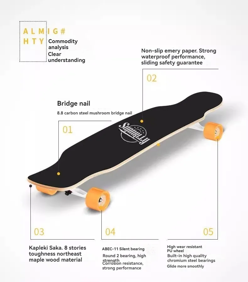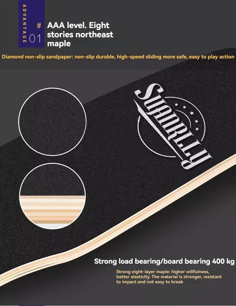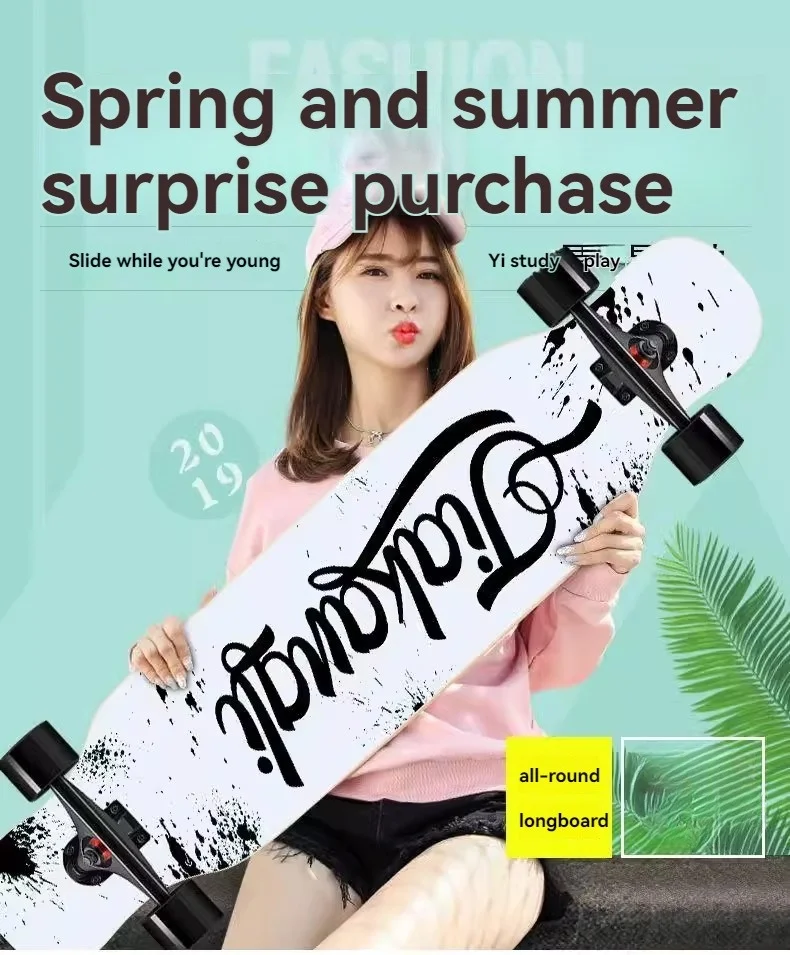 Beginner Skateboard Maple Longboard Adult Street Professional Transportation Four-Wheel Road Board Youth Skateboard