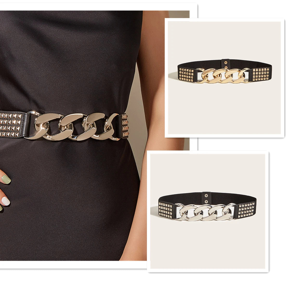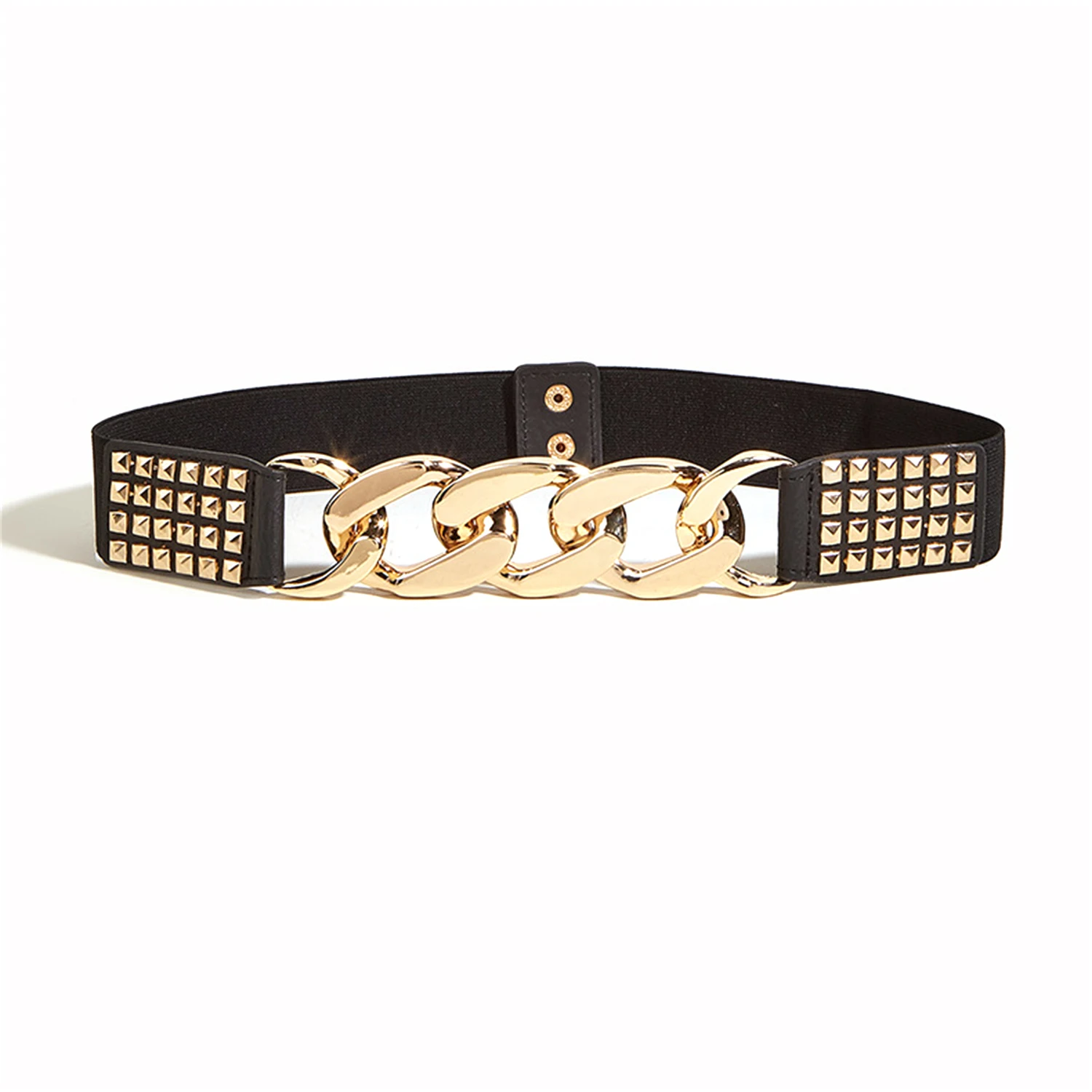 Chain Elasticity Women'S Belts for Ladies Studs Punk Rock Waist Accessories Decorative Dress Skirt Waistbands Gold Silver Bukle