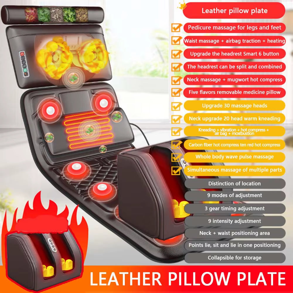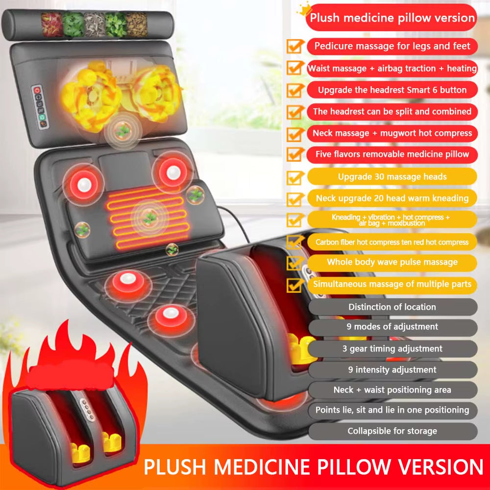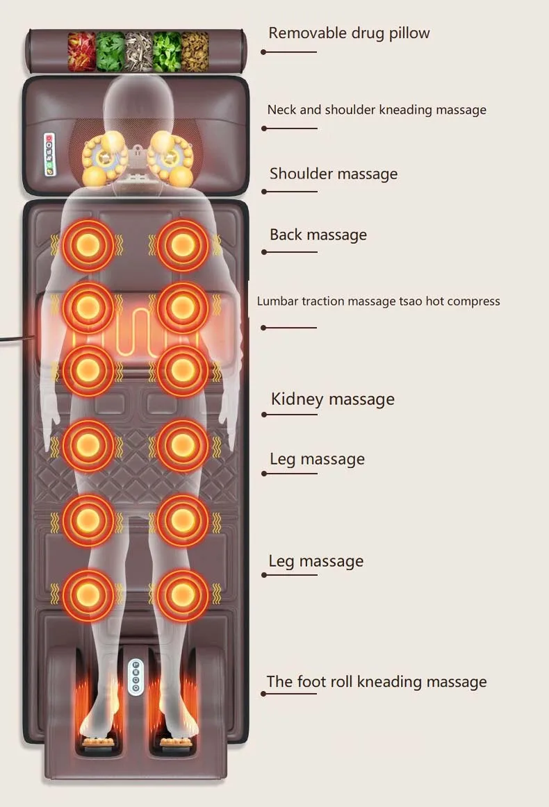 Electric Massage Mattress Vibrating Heating Infrared Massager Kneading Mat for Neck Back Foot Full Body Pain Relief Relaxation
