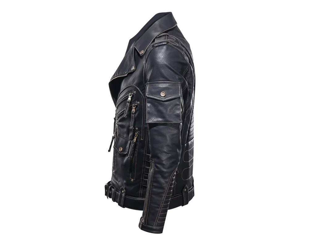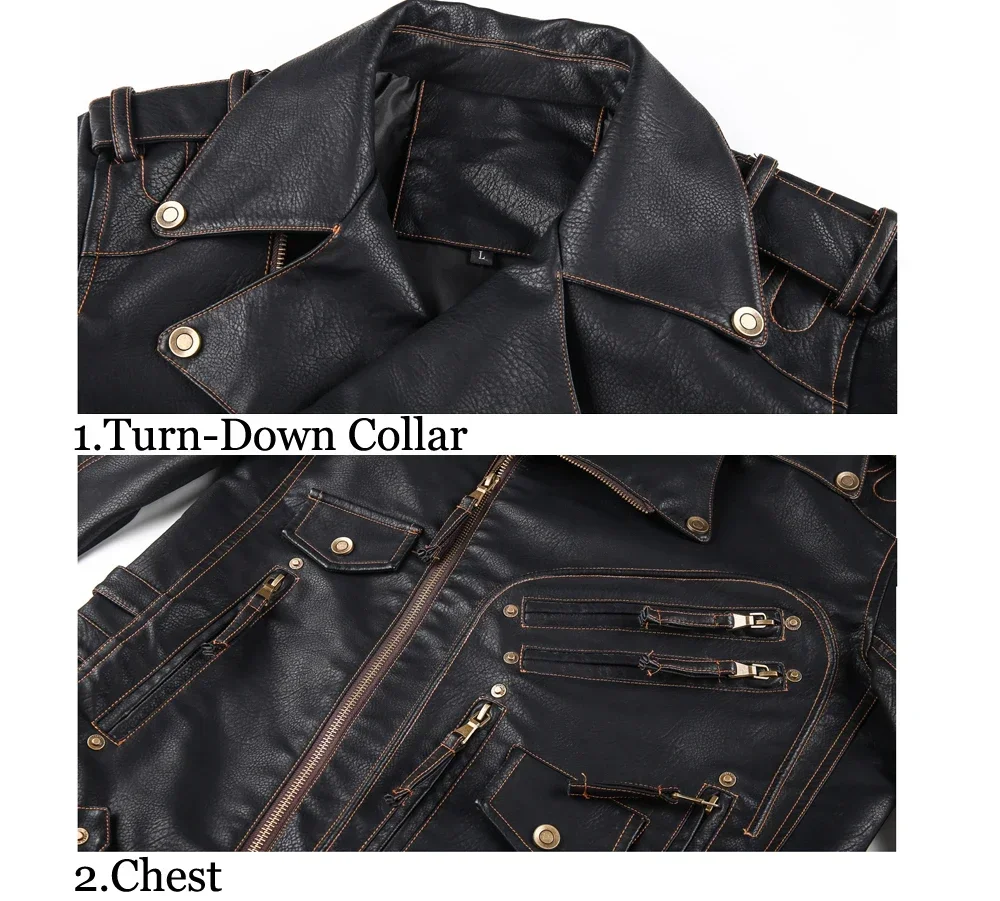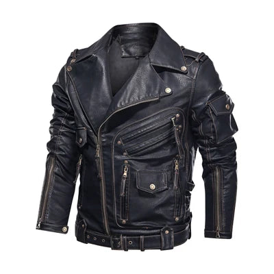 Fashion Winter Winter Mens Leather Jacket Men Fashion Motorcycle PU Leather Jacket Cool Zipper Pockets Leather Coats Clothing