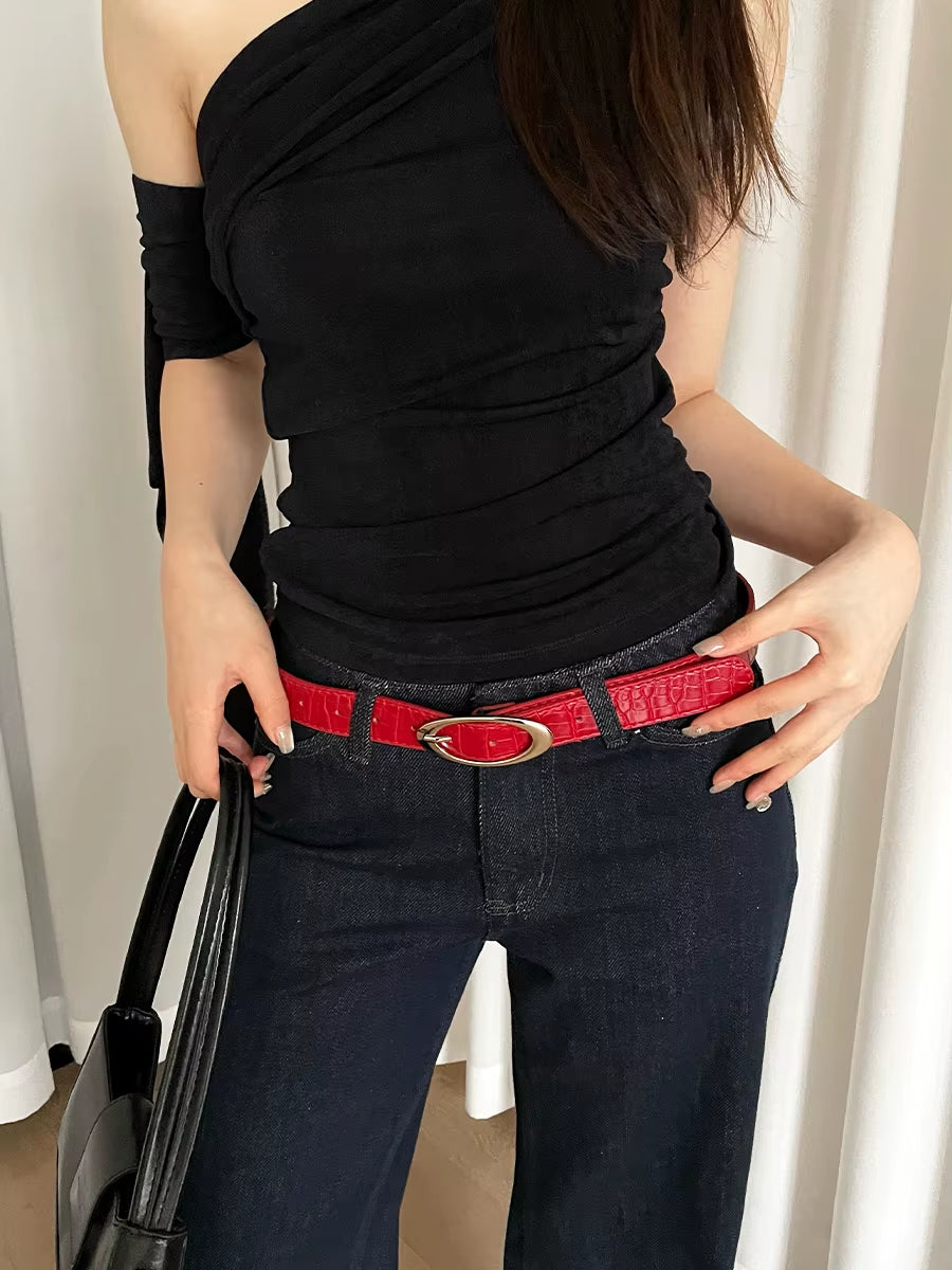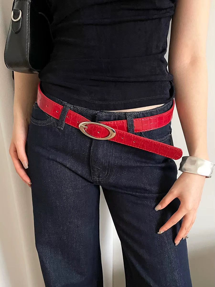 Fashionable Korean Style with Lychee Pattern Women'S Belt 2025 Red High-End Versatile Simple Ins Style Decoration Belt Trend