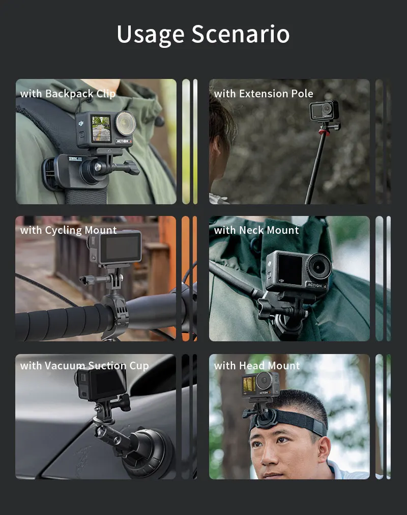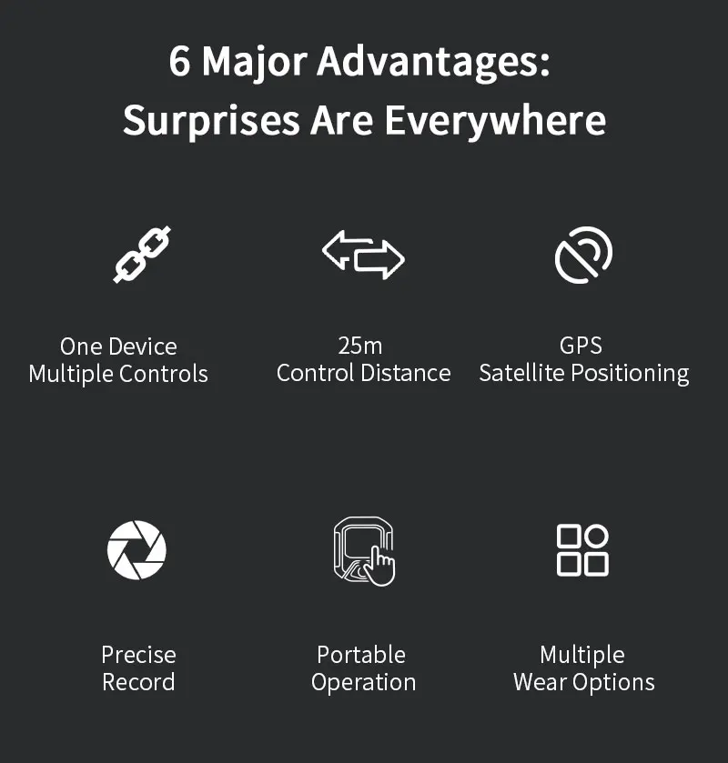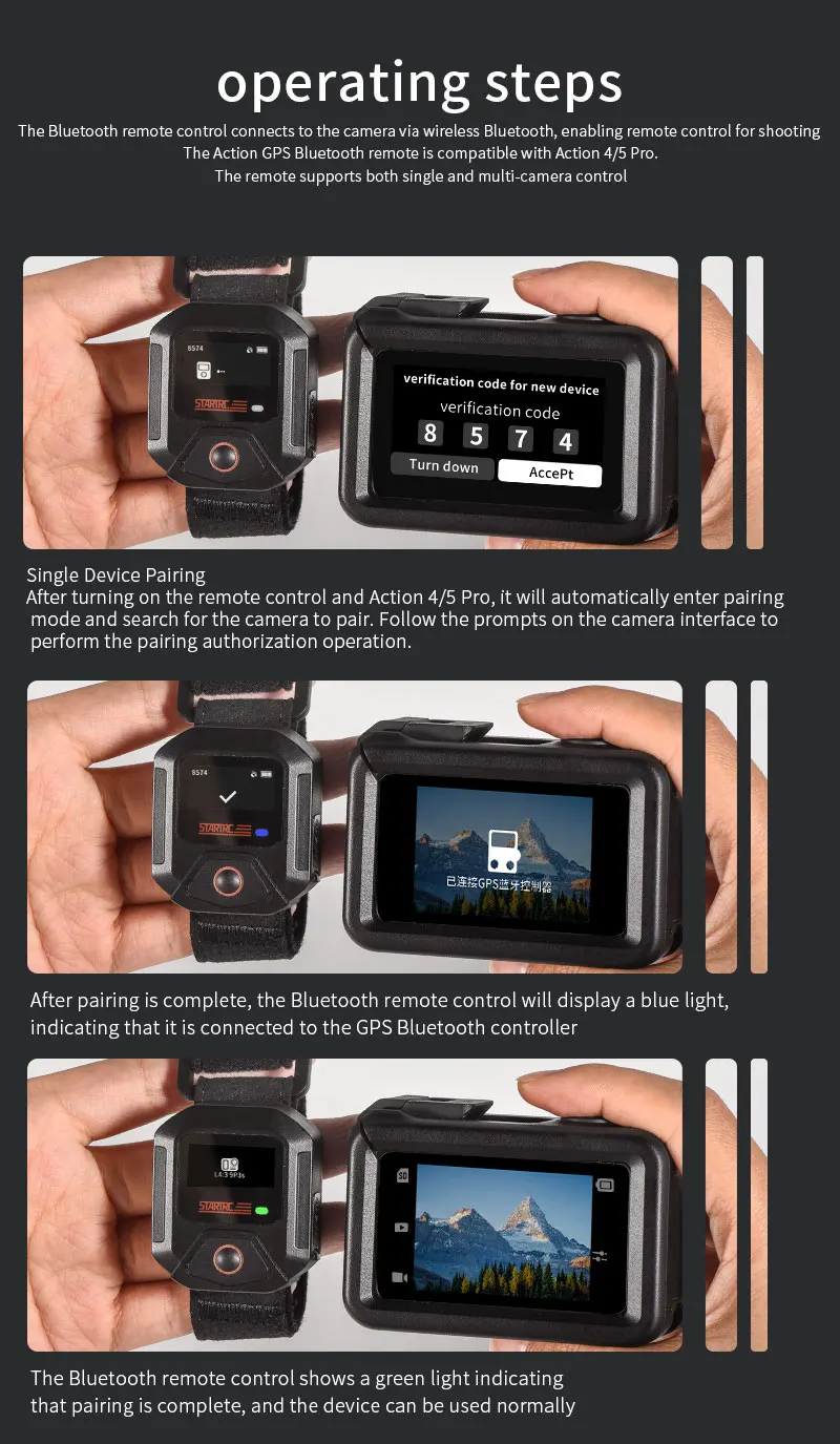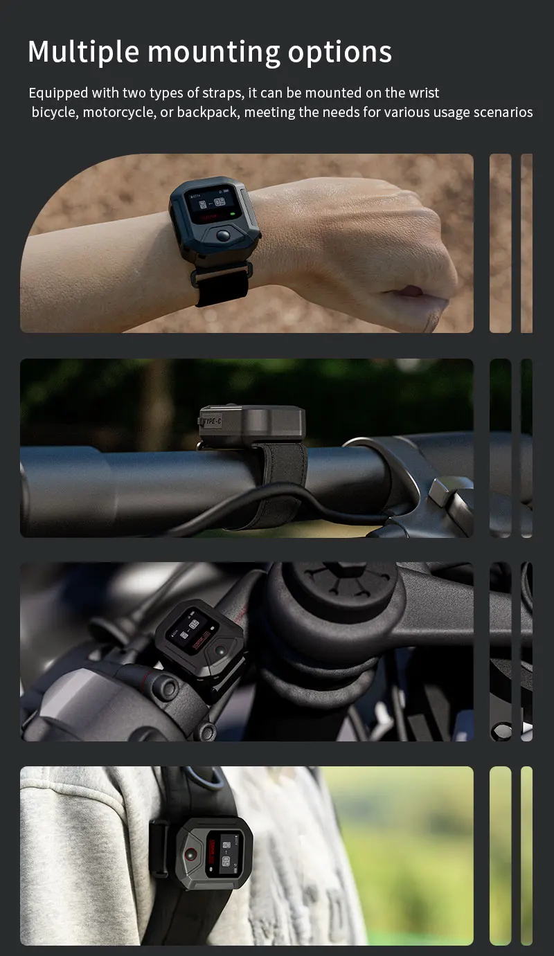 A single remote controller can be paired with multiple cameras, enhancing team collaboration efficiency; equipped with dual mounting straps compatible with wrists, bicycles, backpacks, and more, meeting installation needs for skiing, cycling, hiking, and other scenarios.