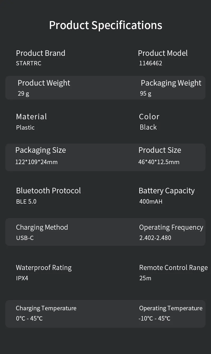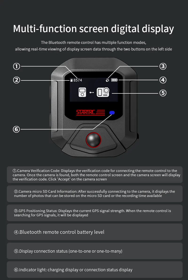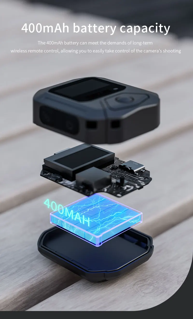 One-button wake/sleep for the camera, quick mode switching, and real-time device status monitoring; a short press of the shutter button instantly starts recording, paired with a stable Bluetooth 5.0 connection for precise response even in complex environments.