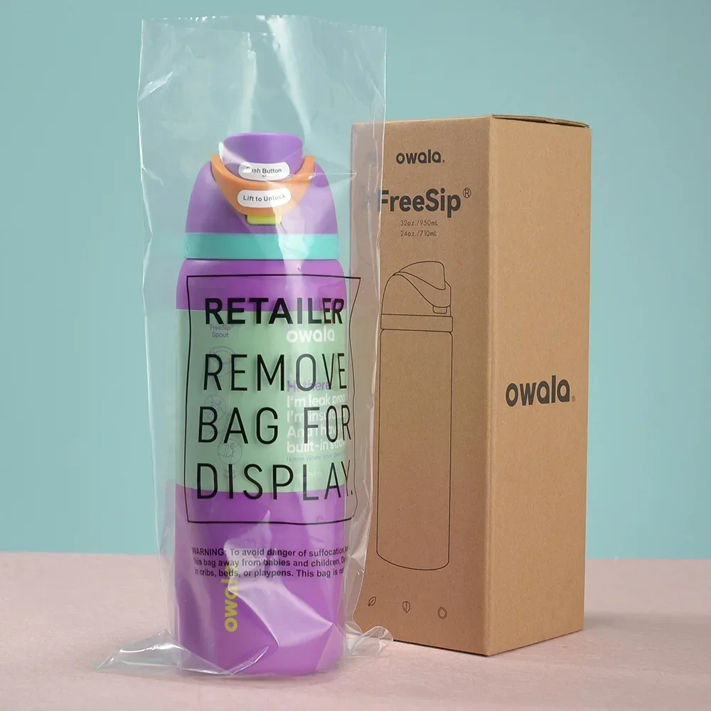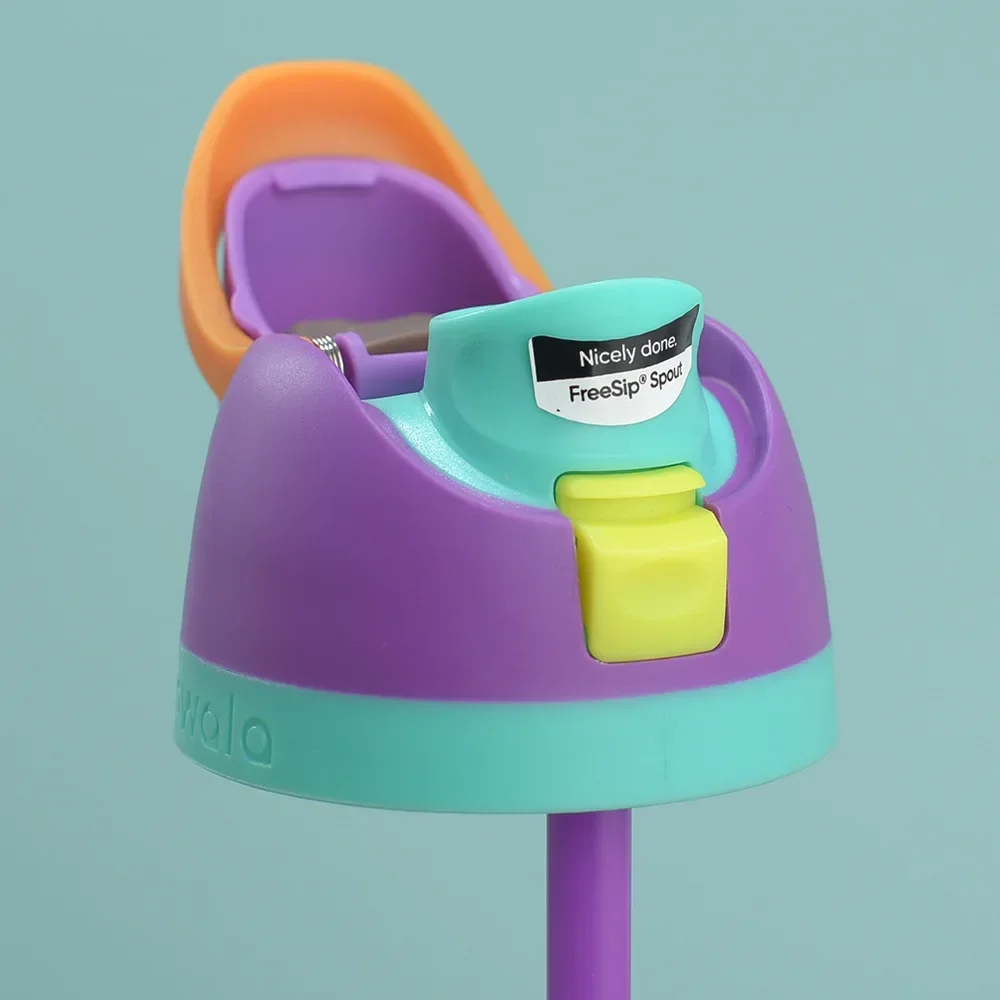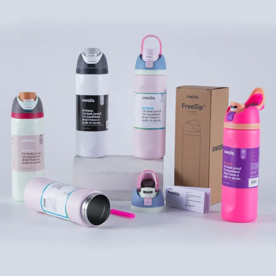 The Owala FreeSip Insulated Stainless-Steel Water Bottle with Locking Push-Button Lid easily tackles every thirst. With a built-in, easy-clean straw and a wide-mouth opening, the FreeSip reusable bottle is designed for drinking two different ways: sipping upright through the straw or tilting back to swig from