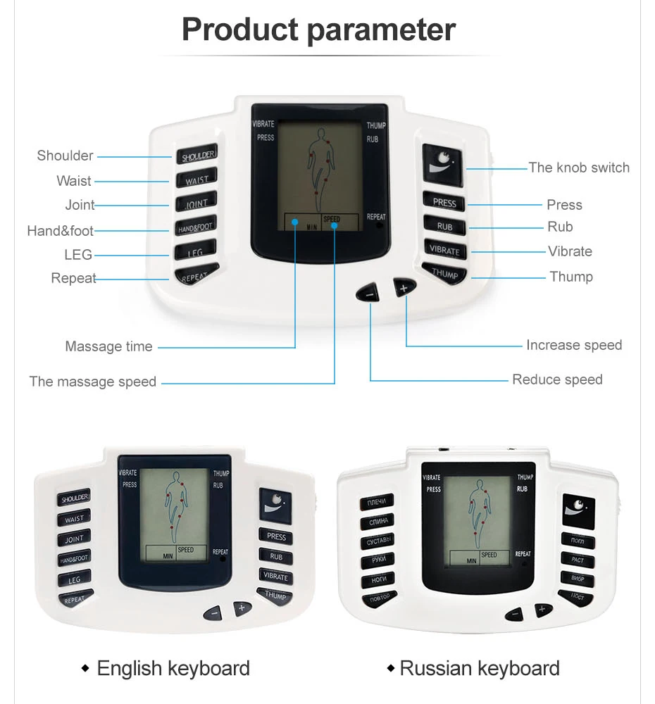 JR309 EMS Tens Russian button Electric Stimulator Full Body Relax Muscle Massager Pulse tens Acupuncture Body Massager