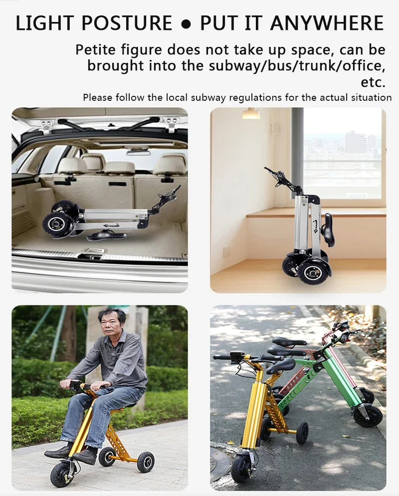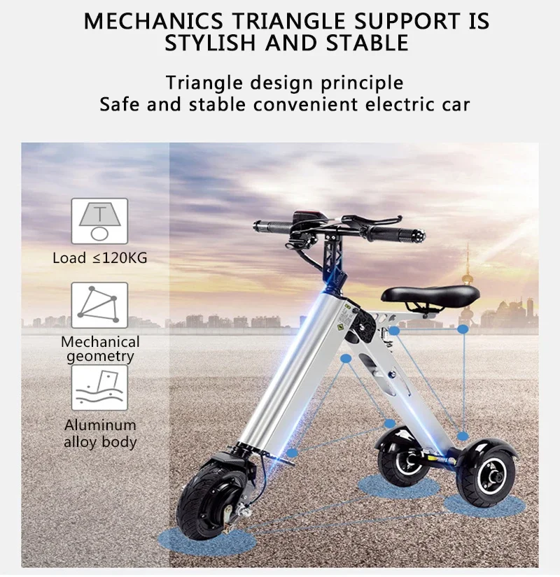 K7S Simple Shape Mini E-Bike Three-Wheel Foldable Electric Scooter for Adult Intelligent Electric Bike Bicycle 250W 36V 7.8Ah
