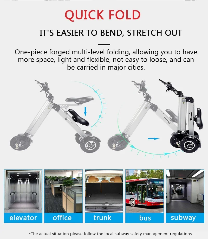 It is easier to bend and stretch out, does not take up space, one-piece forged multi-level folding, allowing you to have more space, light and flexible, not easy to loose, and can be taken in major cities.