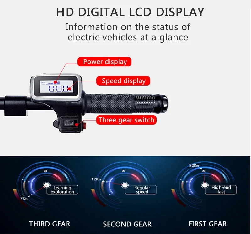 High-definition digital LCD display, the status information of electric vehicles is clear at a glance.