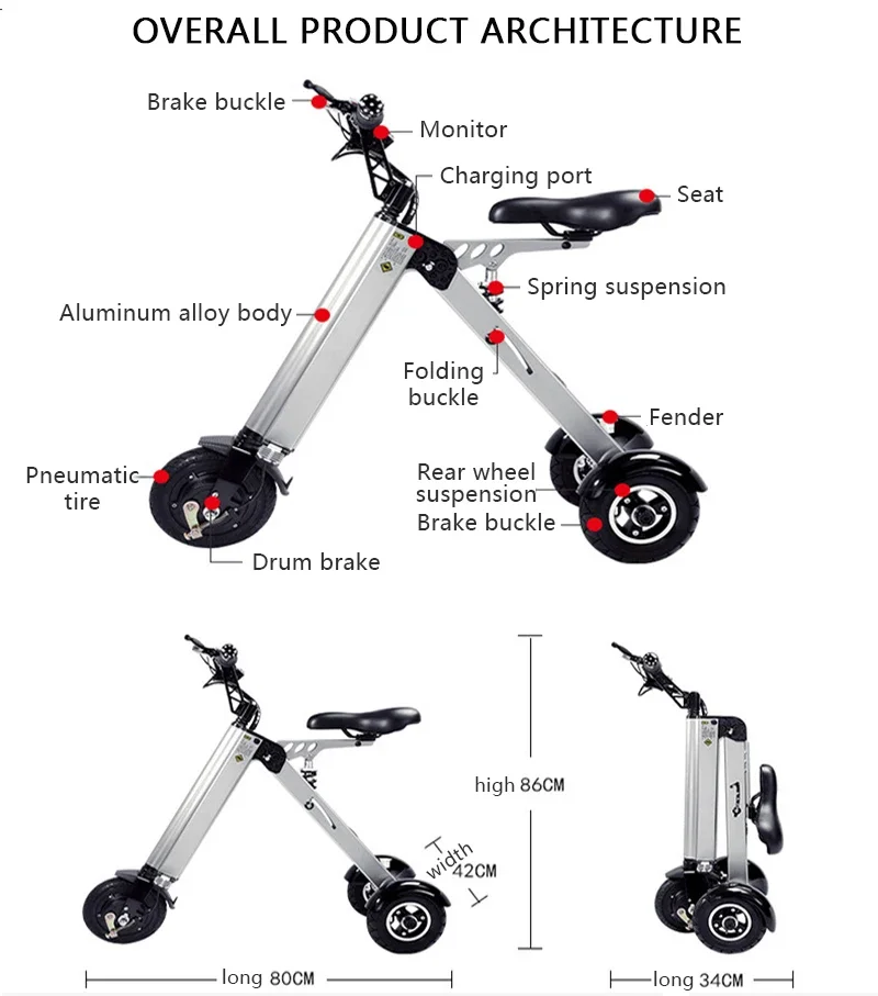 Note: The front of this car cannot be folded, and the rear wheel has dual shock absorbers. Please pay attention before buying.