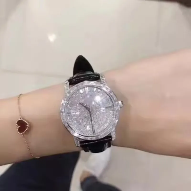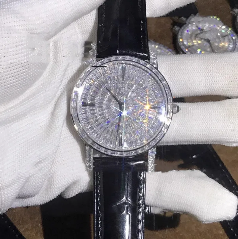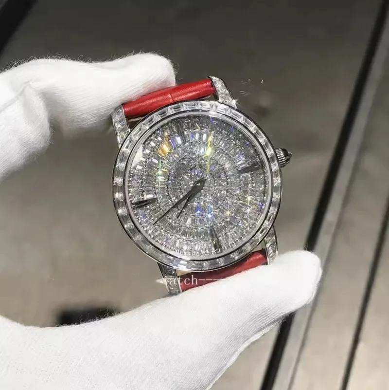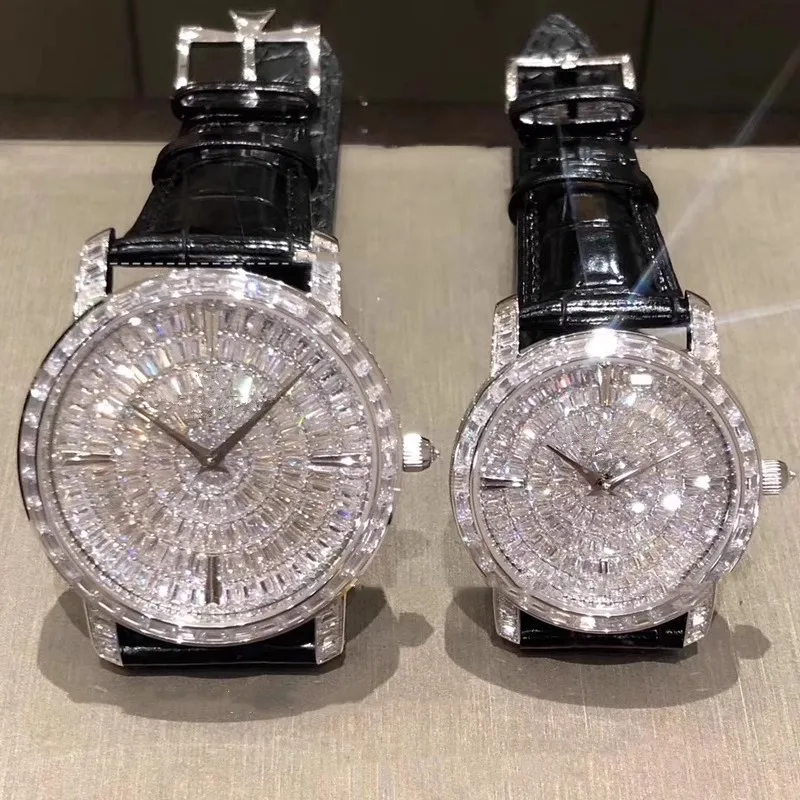 Luxury Diamonds Lovers Quartz Watch Men Fashion Casual Needle Buckle Leather Belt Mens Wrist Watch