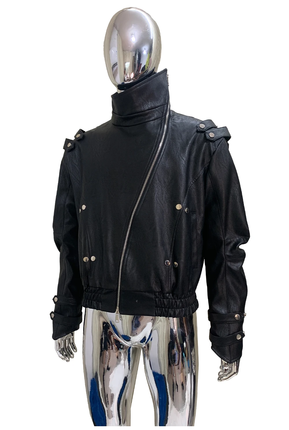 Mauroicardi Spring Autumn Cool Windproof Short Black Faux Leather Jacket Men Zipper Chic Luxury Designer Clothes Streetwear 2025