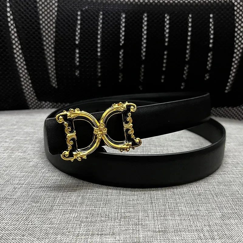 New Width 2.5Cm Genuine Leather Women Belt Luxury Brand Design Thin Waist Lady Belt Reversible Dress Party Belt for Women Jeans