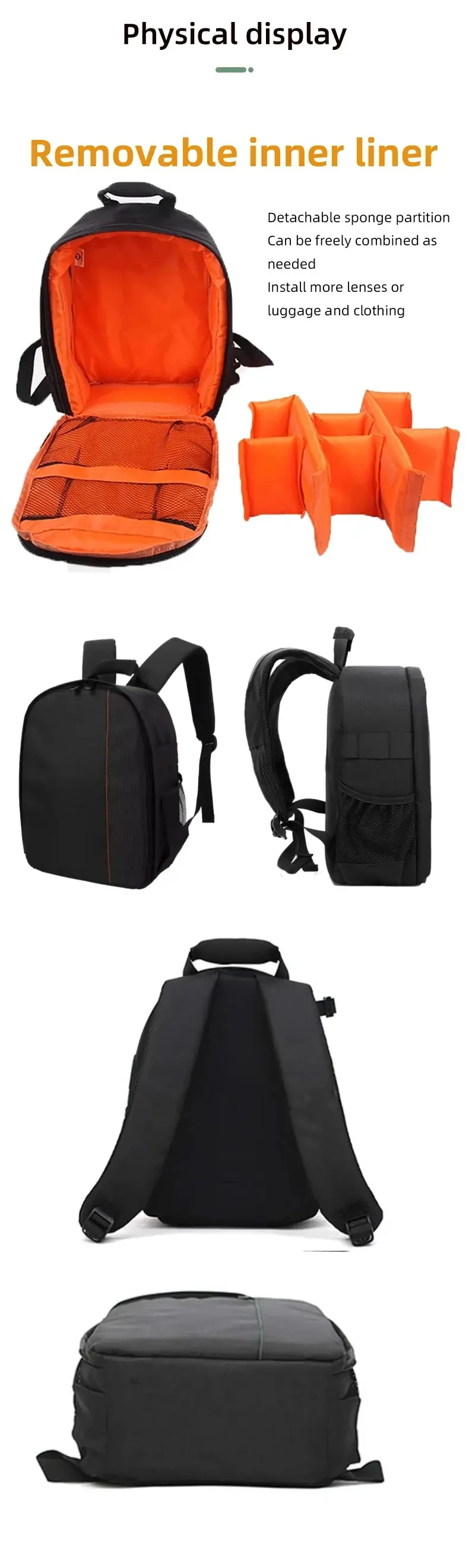Stylish backpack with color lining, compatible with most DSLR cameras