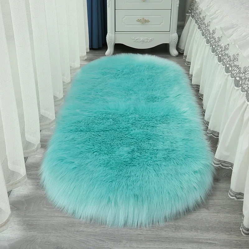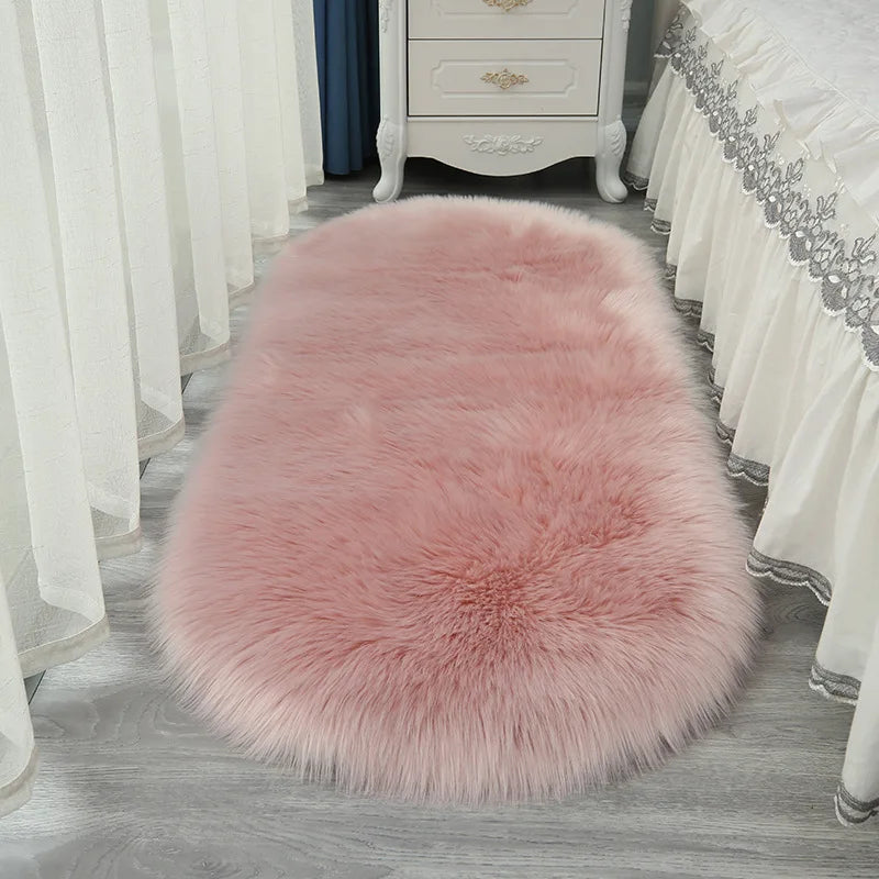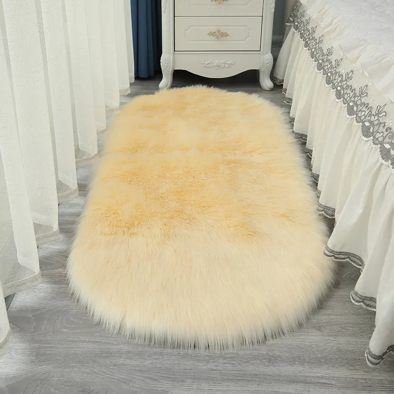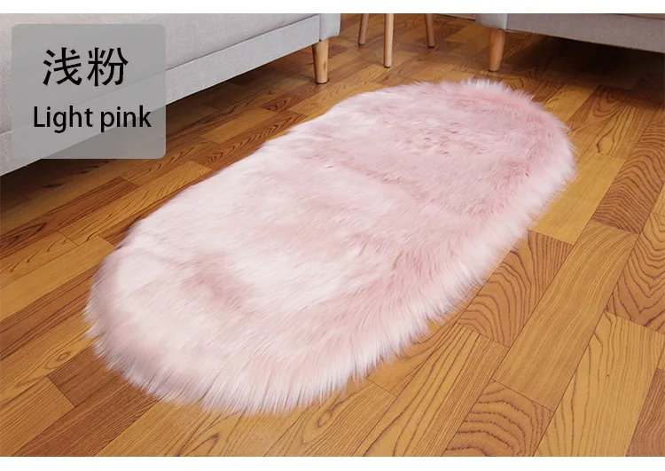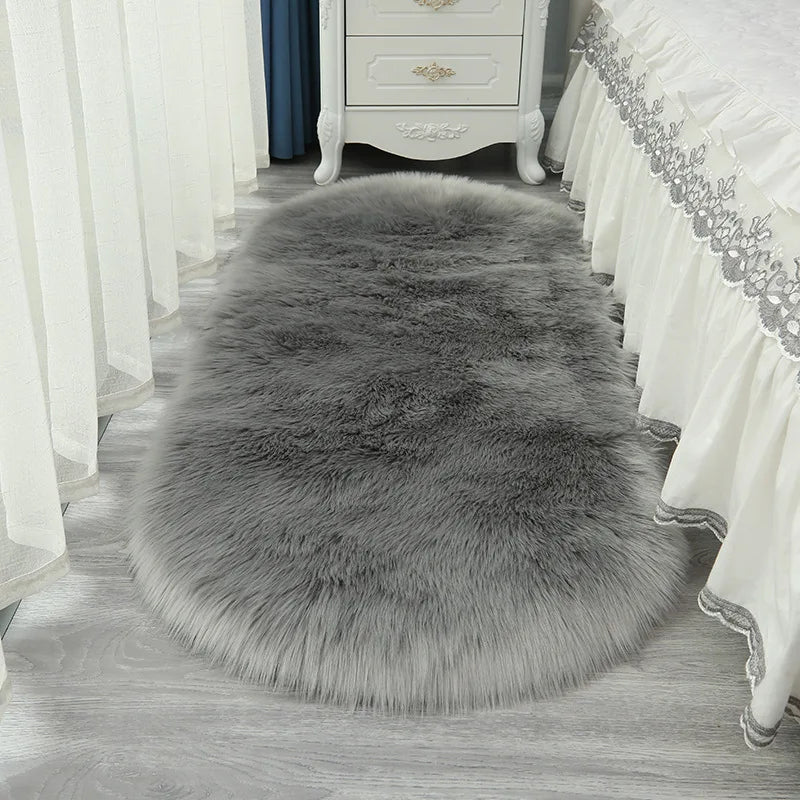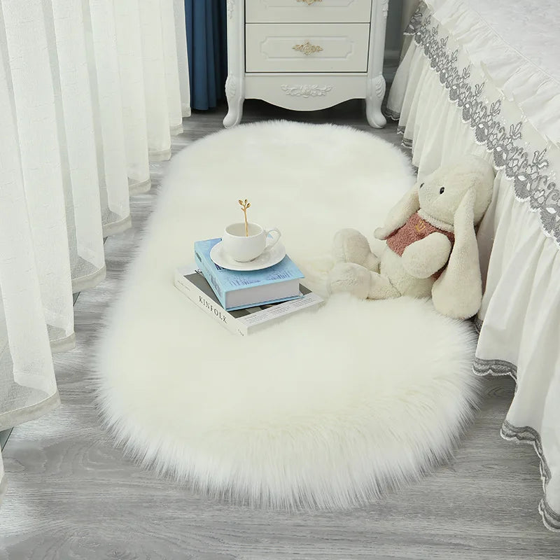 Oval Fluffy Living Room Carpet Soft Faux Fur Plush Bedroom Bedside Carpets Girl Room White Home Decoration Rugs Furry Floor Mats