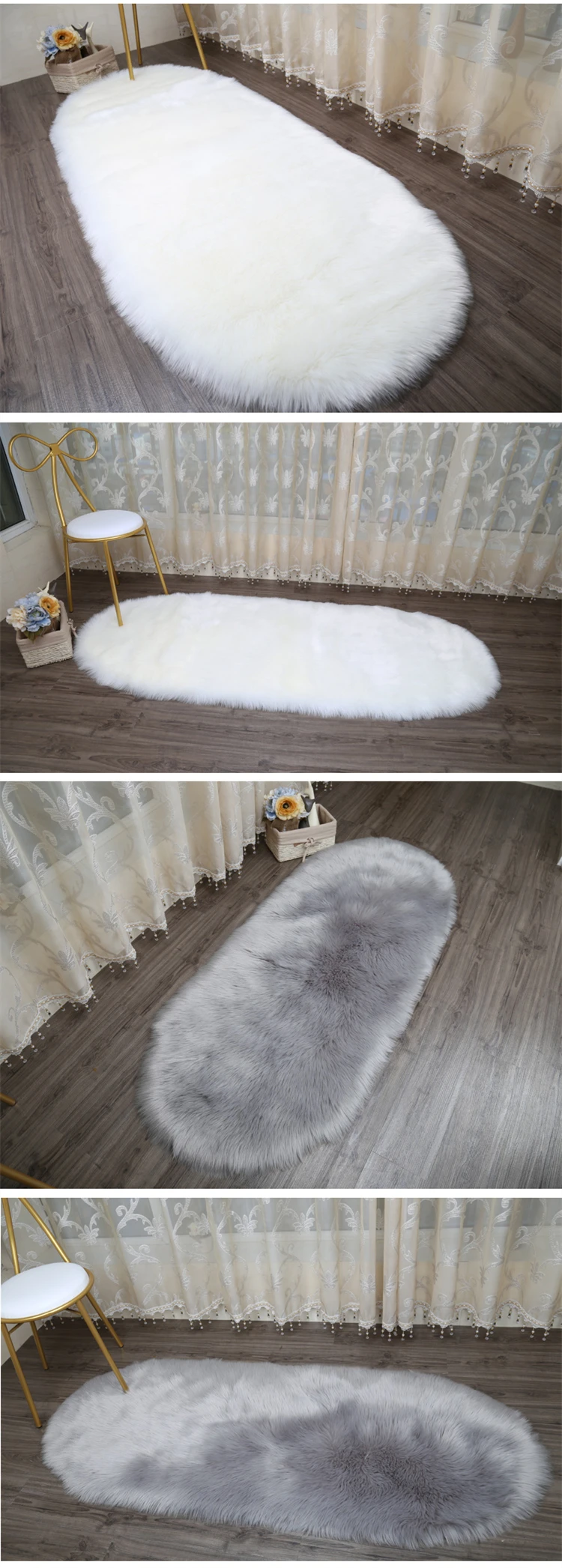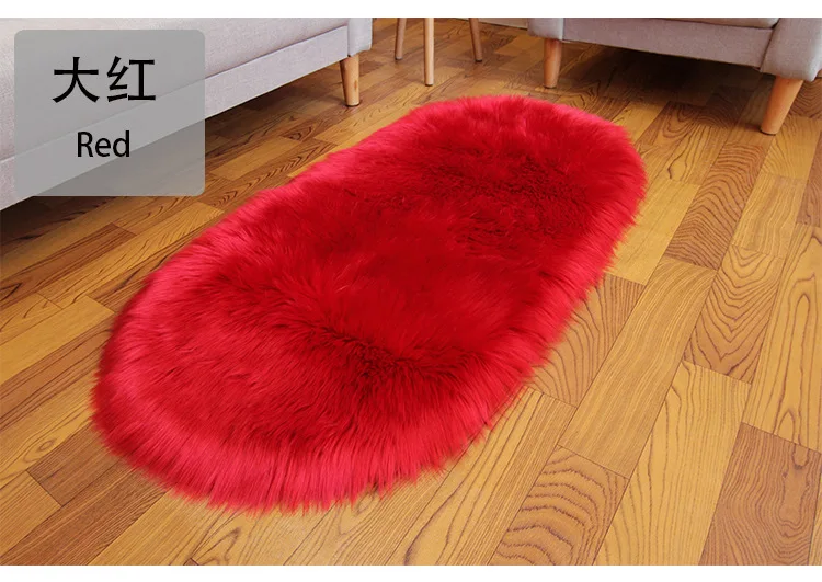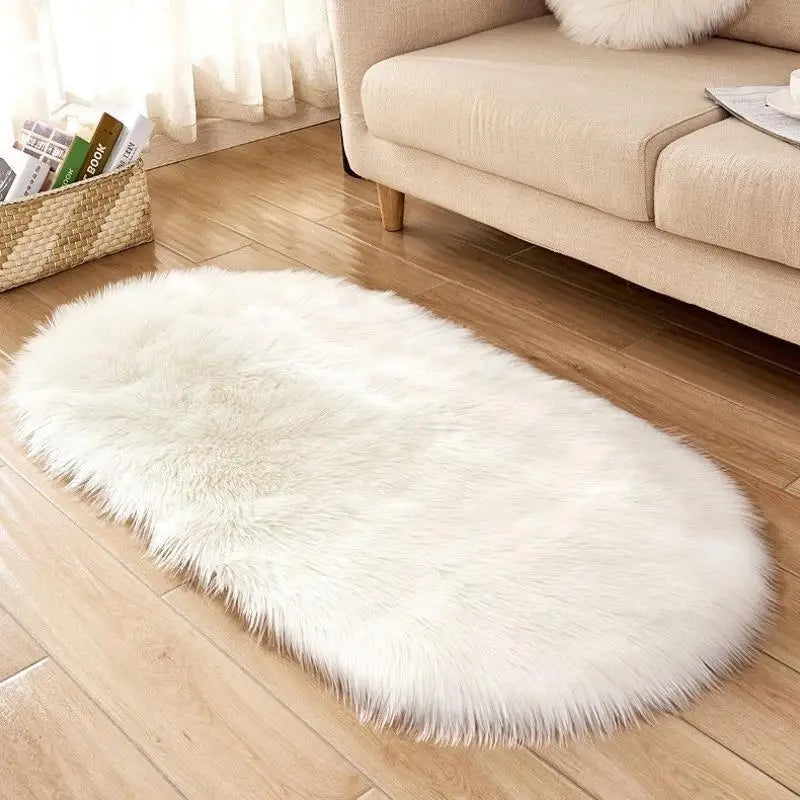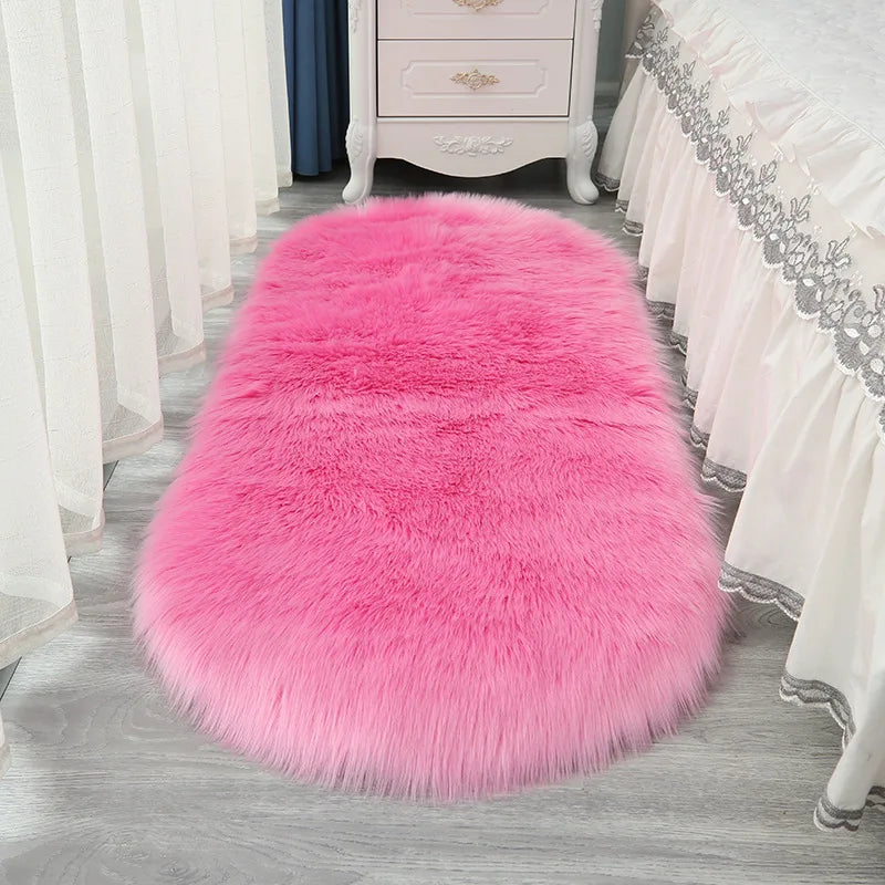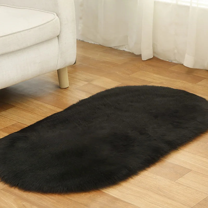 Oval Fluffy Living Room Carpet Soft Faux Fur Plush Bedroom Bedside Carpets Girl Room White Home Decoration Rugs Furry Floor Mats