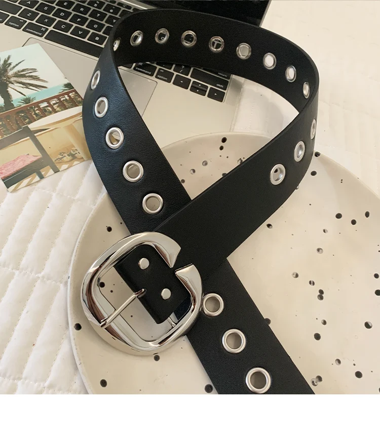 Punk Style Design Sense Black Wide Belt Female Minority Personality Advanced Sense with Skirt Jeans Belt Leather Belt