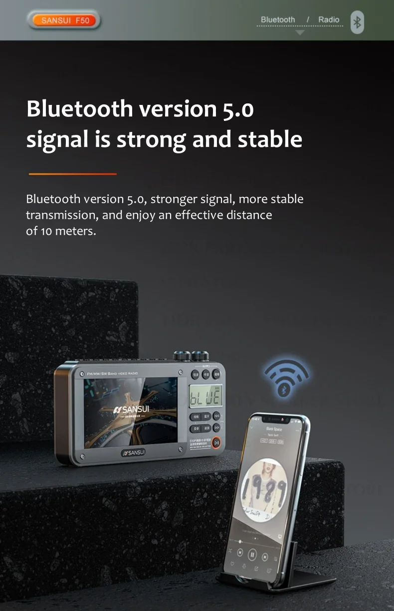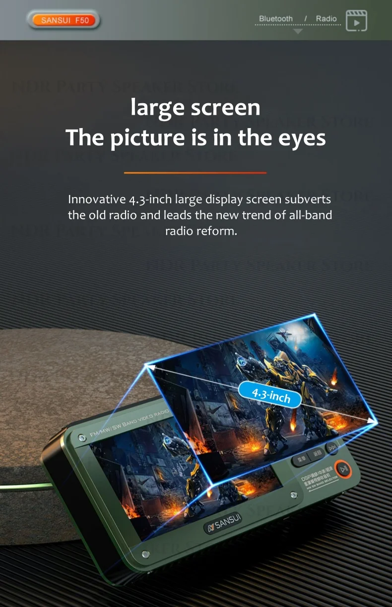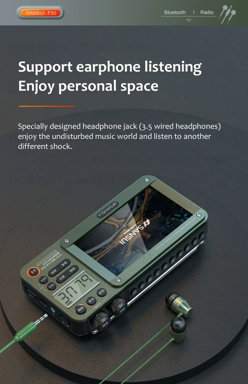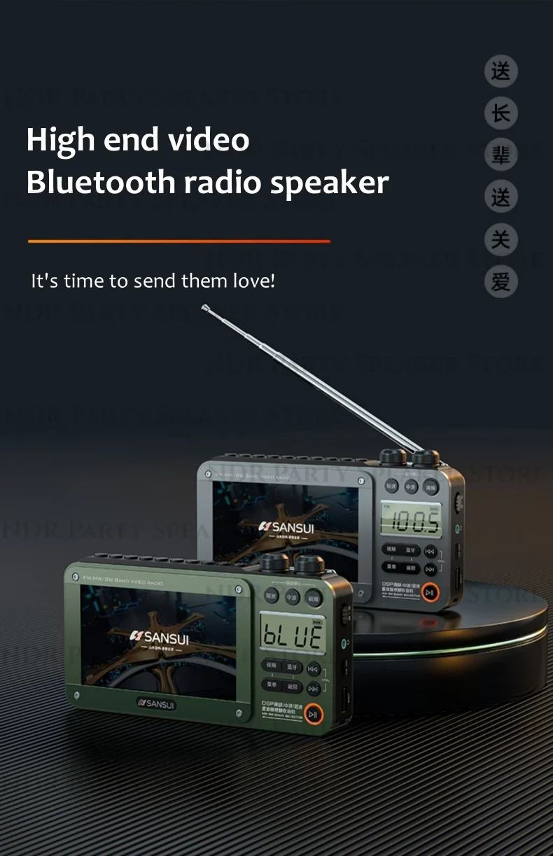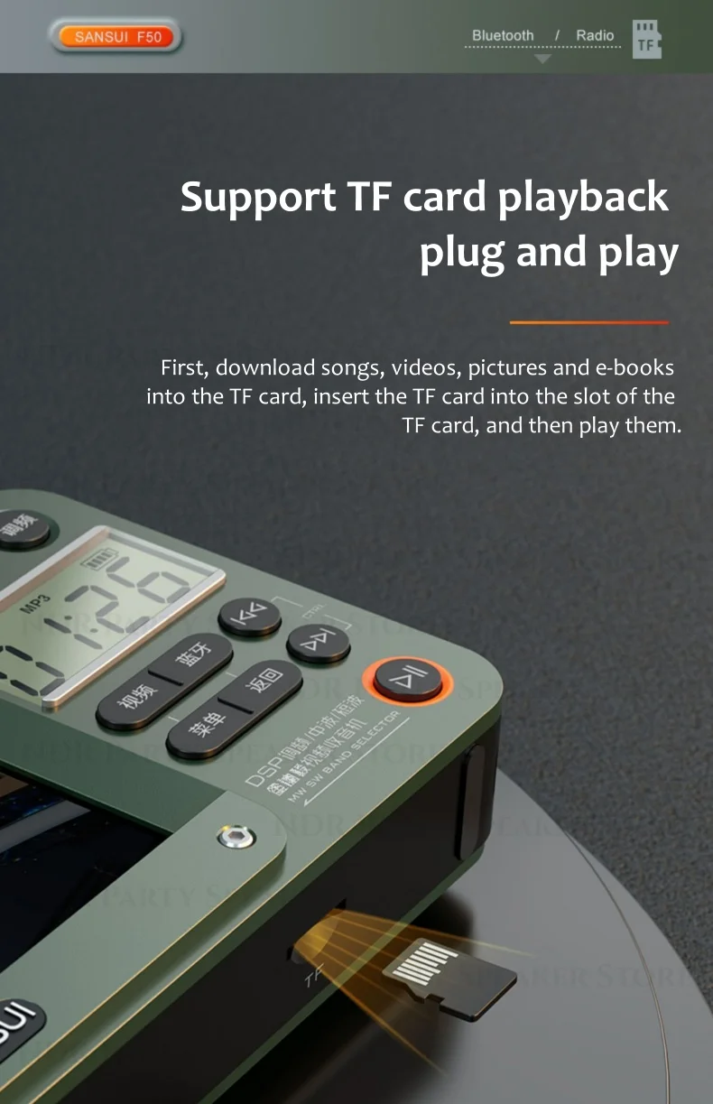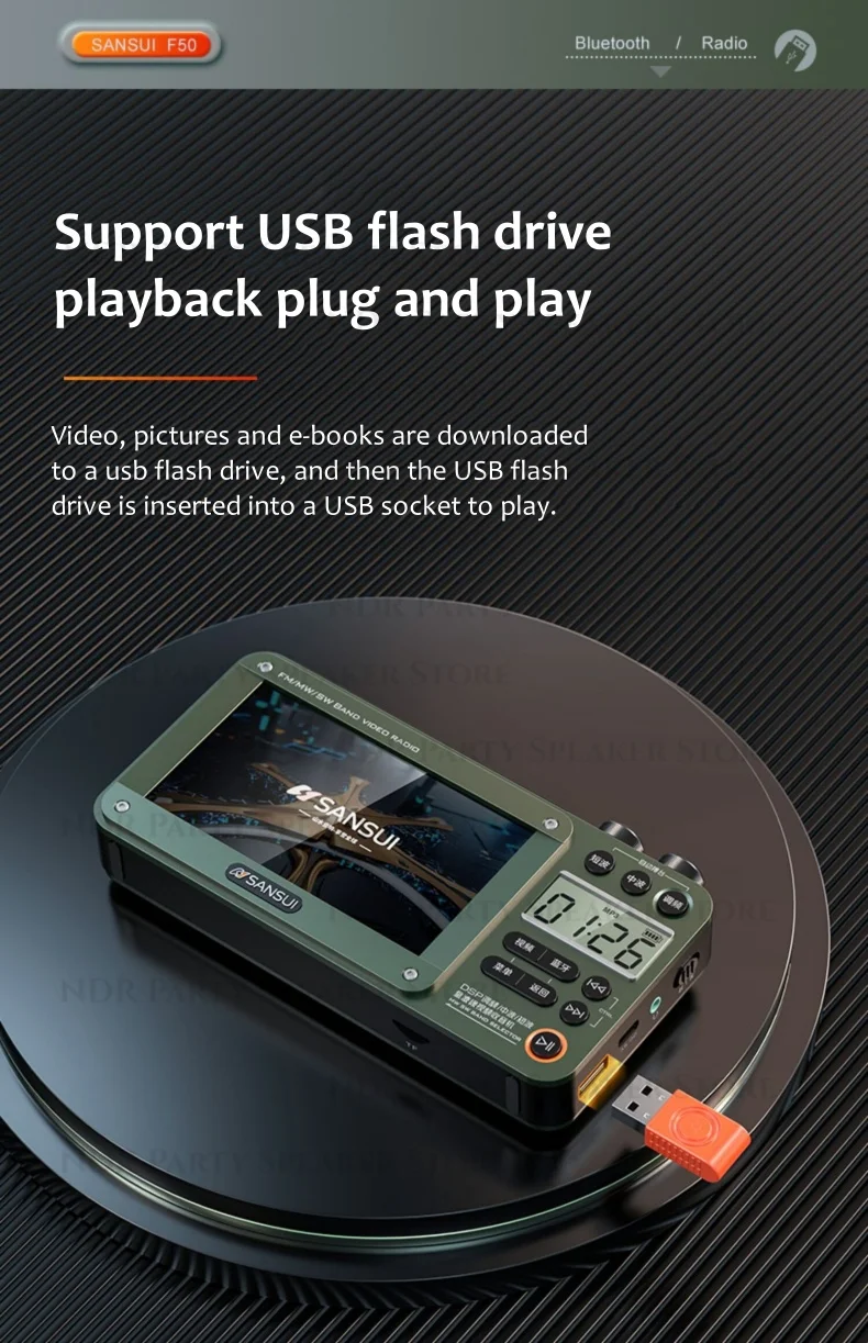 SANSUI F51/F50 Portable FM Radio Video Display Radio Wireless Bluetooth Speakers Dual TF Card Slot MP4 Music Player Video E-Book