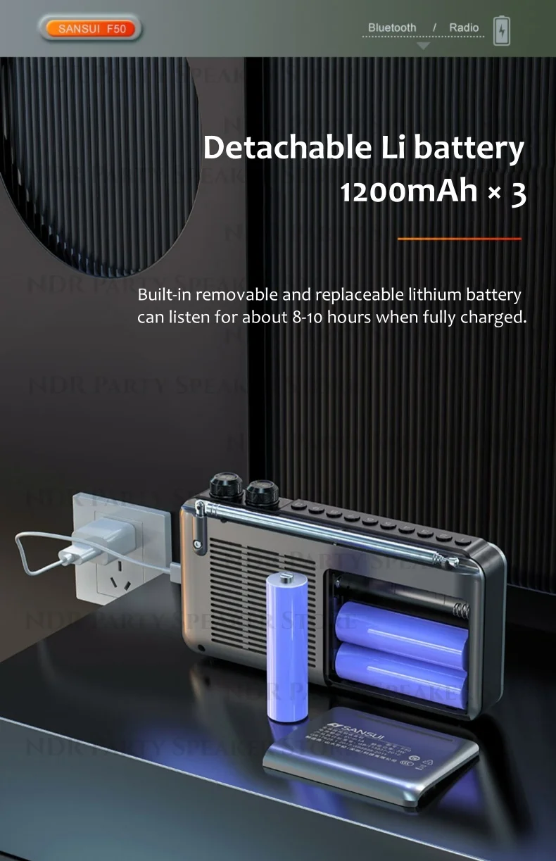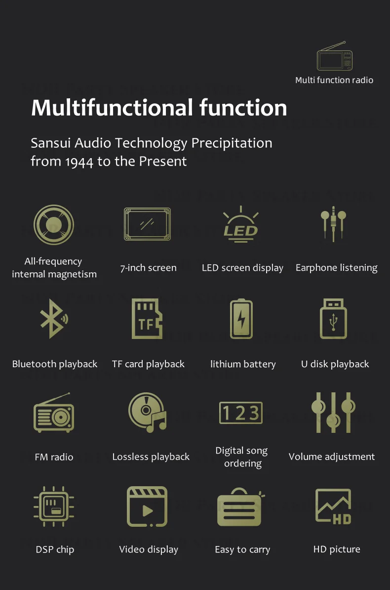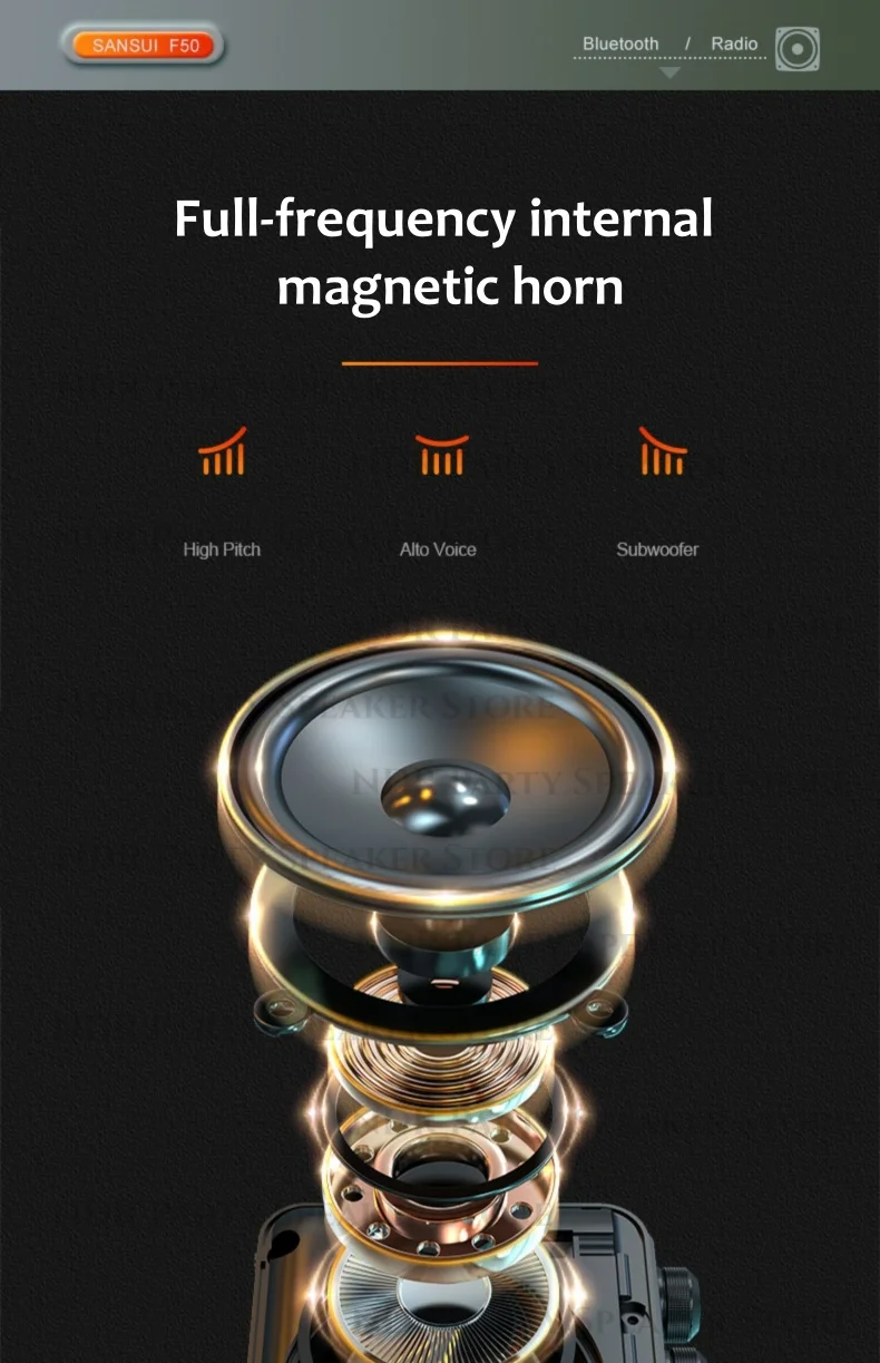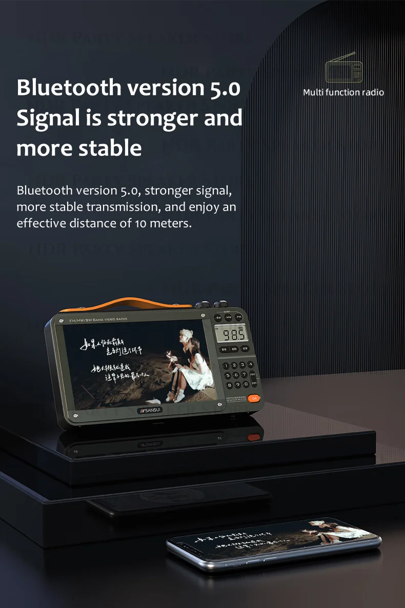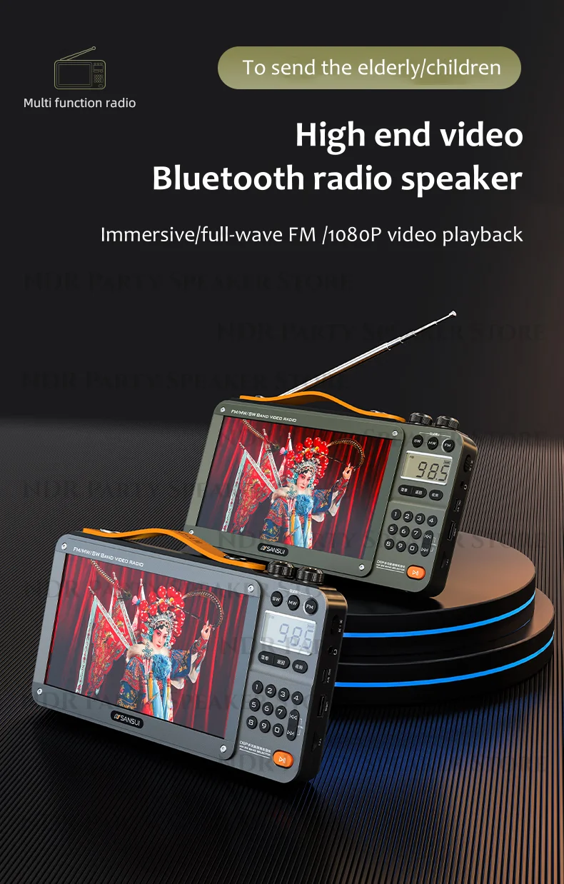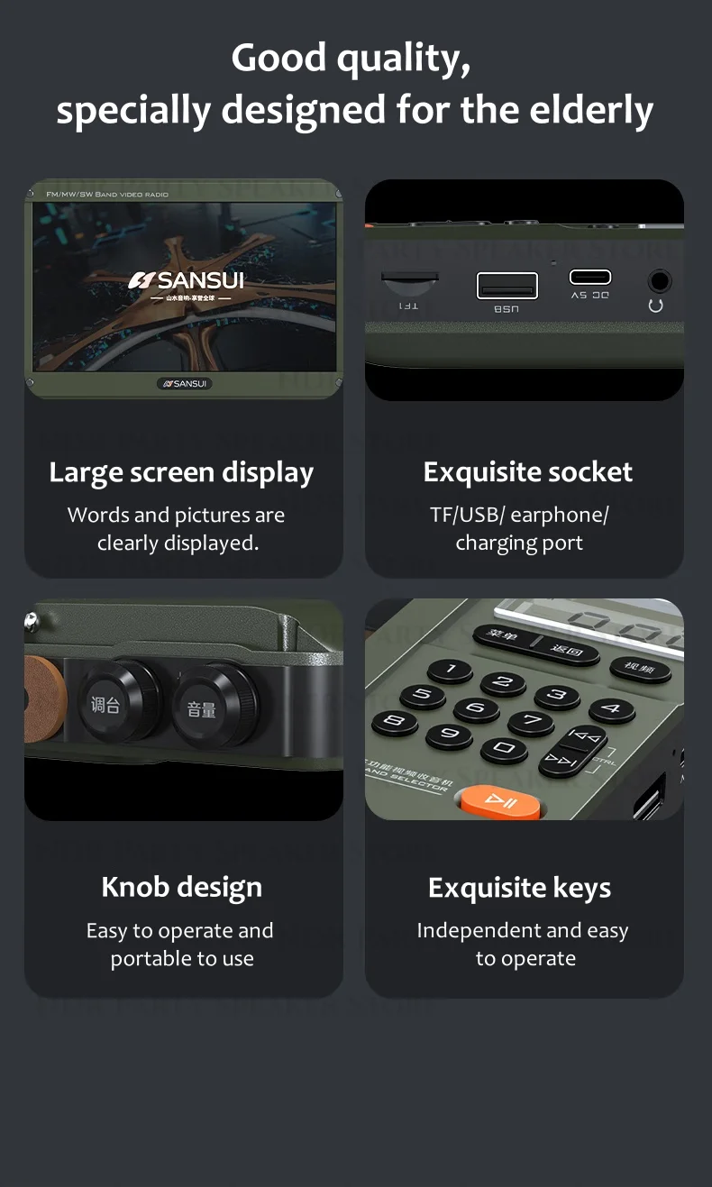 SANSUI F51/F50 Portable FM Radio Video Display Radio Wireless Bluetooth Speakers Dual TF Card Slot MP4 Music Player Video E-Book