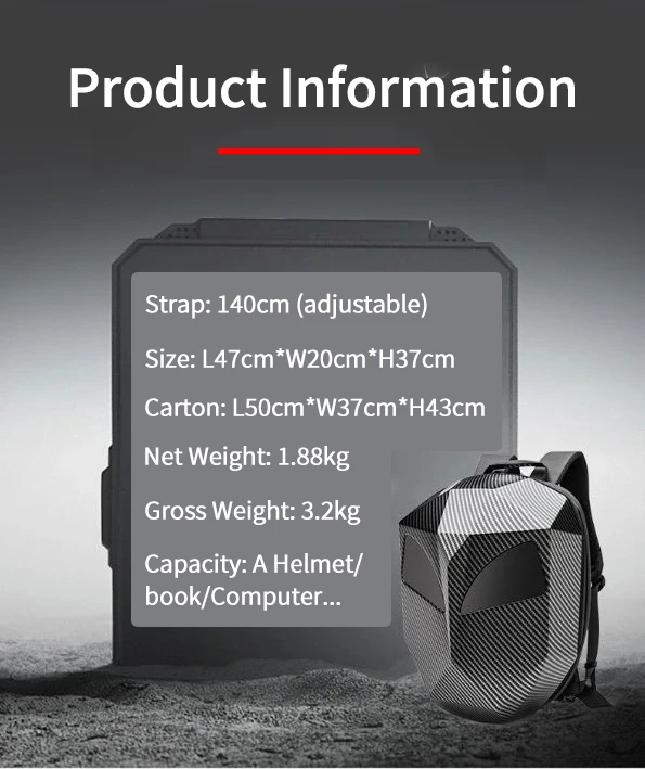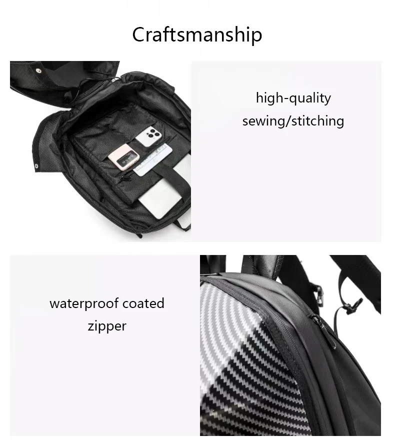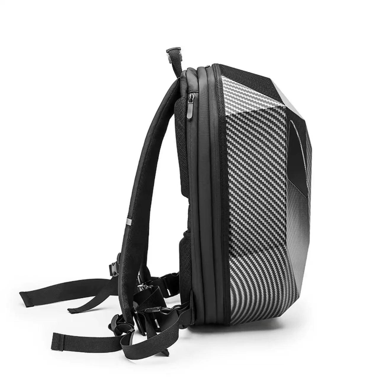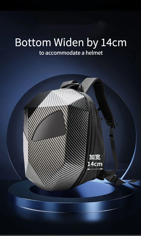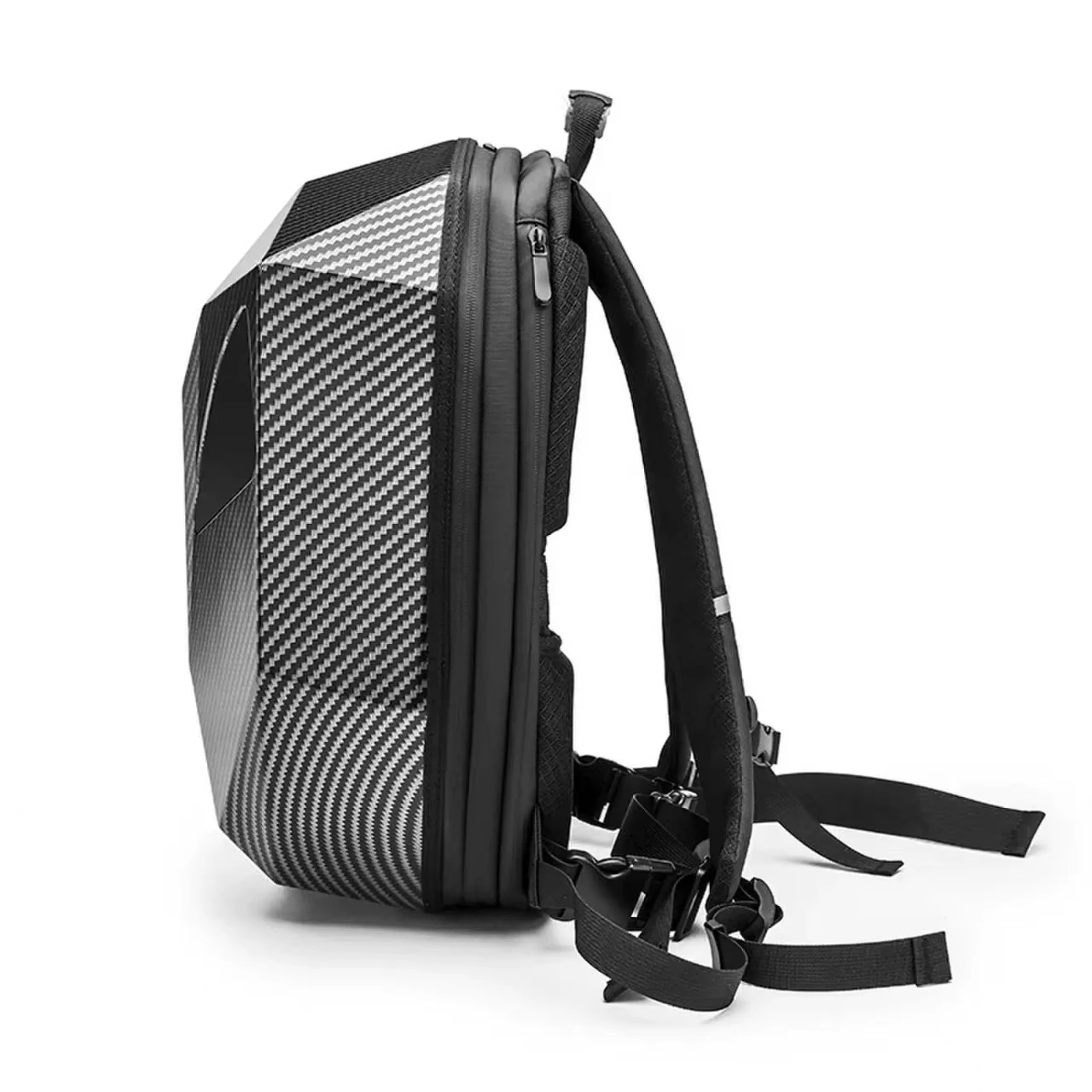 【Durable PC Hard-Shell Protection】Made of PC carbon fiber, this LED backpack’s hard shell offers strong protection for your full helmet, safeguarding it against bumps and scratches during travel.
