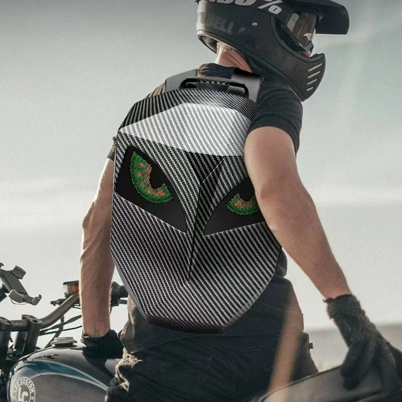 【Customizable LED "Eyes" Display for Style and Safety】Featuring LED screen "eyes," this bag allows you to display custom animations, images, or text. The bright red glow enhances visibility at night, boosting your safety on the road.