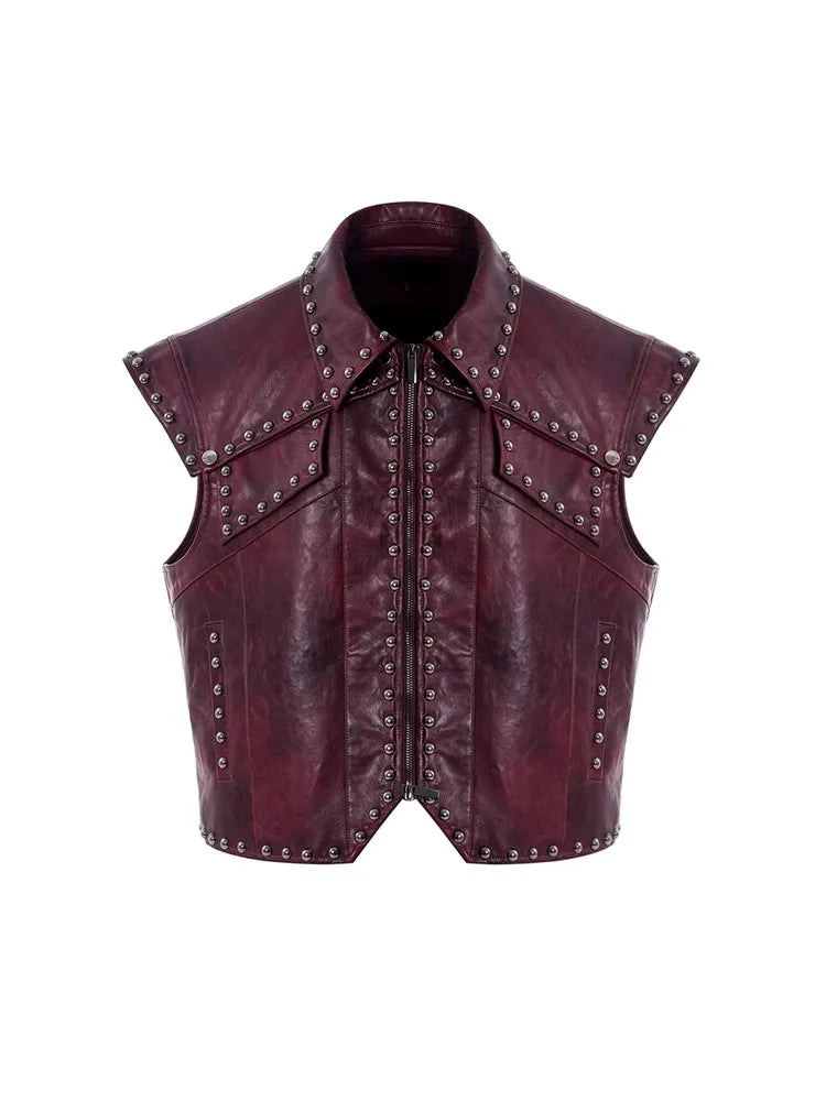 Spring Autumn Cool Distressed Vintage Pu Leather Sleeveless Jacket Men Rivet Luxury Designer Punk Style Clothes Vest