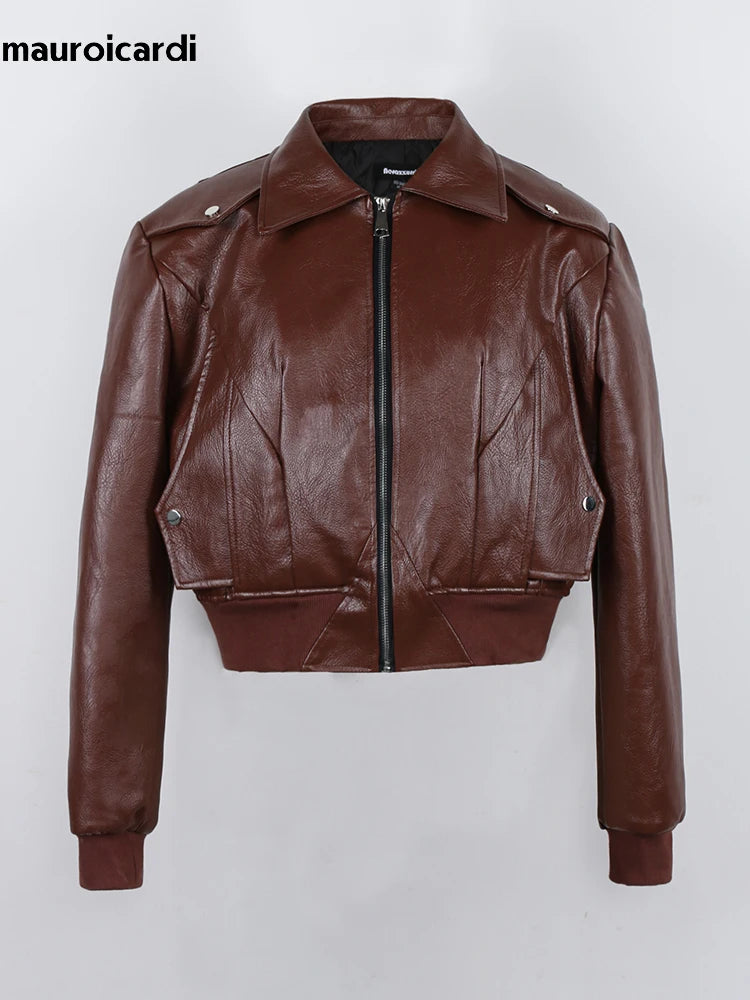 Spring Autumn Cool Handsome Short Oversized Black Pu Leather Jacket Men with Shoulder Pads Long Sleeve Zipper 2023