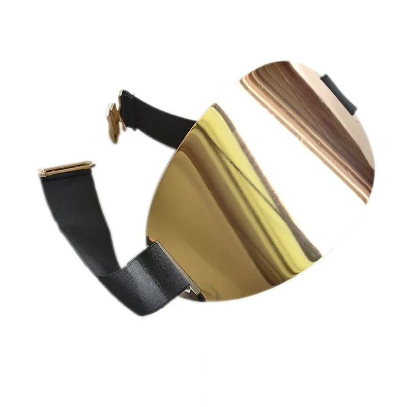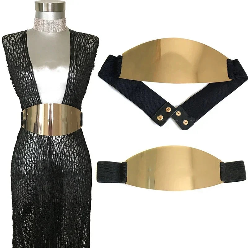 Stylish Brand BLING SHINY WOMEN WAIST WIDE OVAL METAL PLATE MIRROR ELASTIC BELT OBI Silver & Gold Bg-044