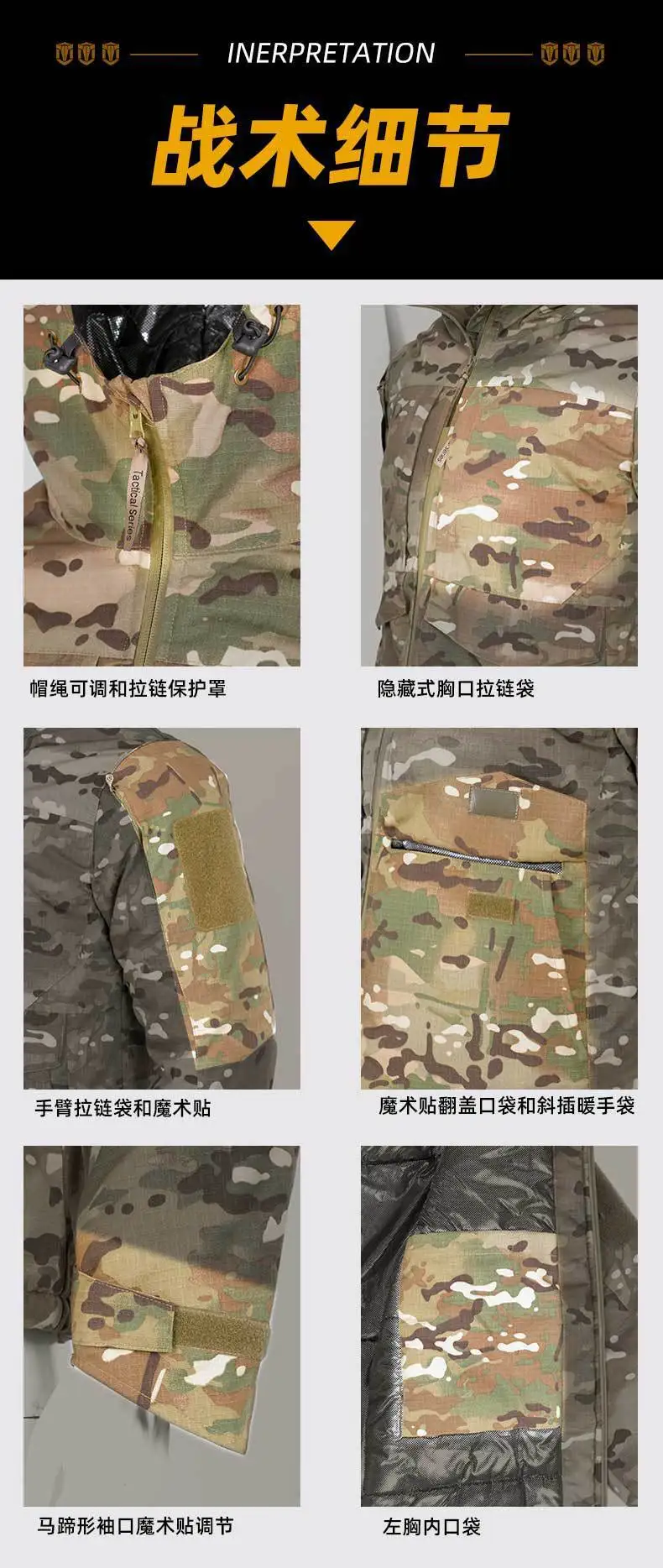 Thermal Reflective Camo Outdoor Tactical Jacket for Men Keep Warm Durable Waterproof Multi Pocket Camouflage Hooded Padded Coats