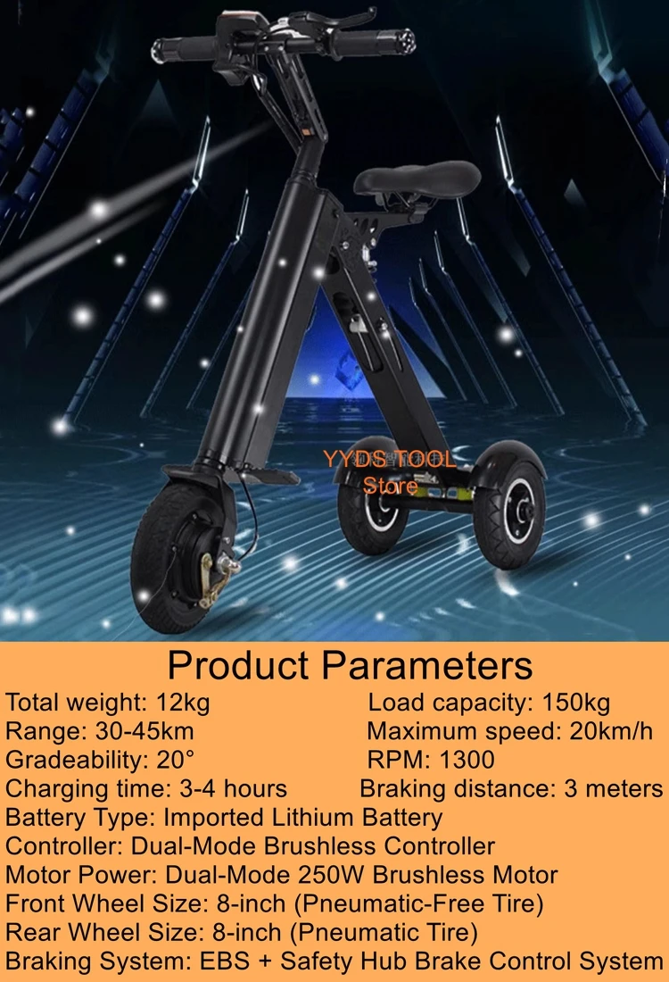 Ultra-Light Folding Electric Bike Adult Lithium Battery Bicycle Portable Electric Tricycle Compact Electric Scooter