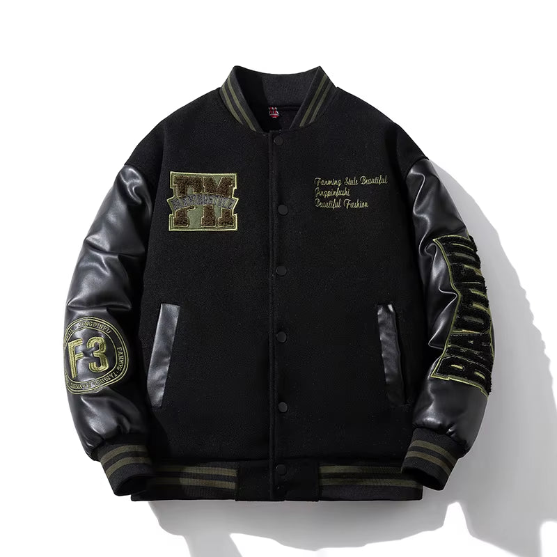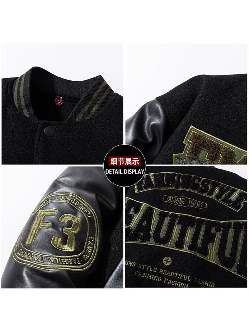 Winter Varsity Jacket Man Leather Sleeves Letter Embroidery Jacket Racing Motorcycle Woolen Coat Button Thick Warm Cool Original