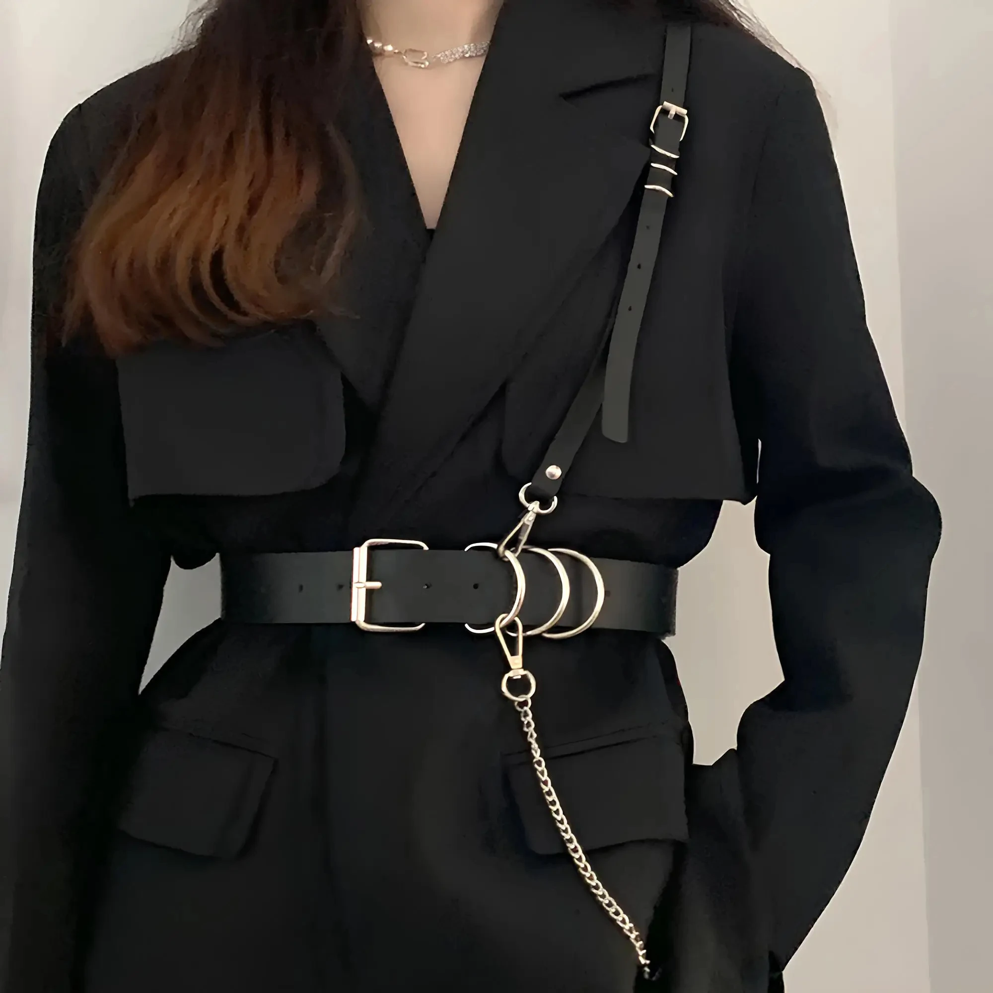 Women Fashion Leather Waist Belt Shoulder Belt Decorative Harness Harajuku Straps Gothic Belt Clothing Accessorie