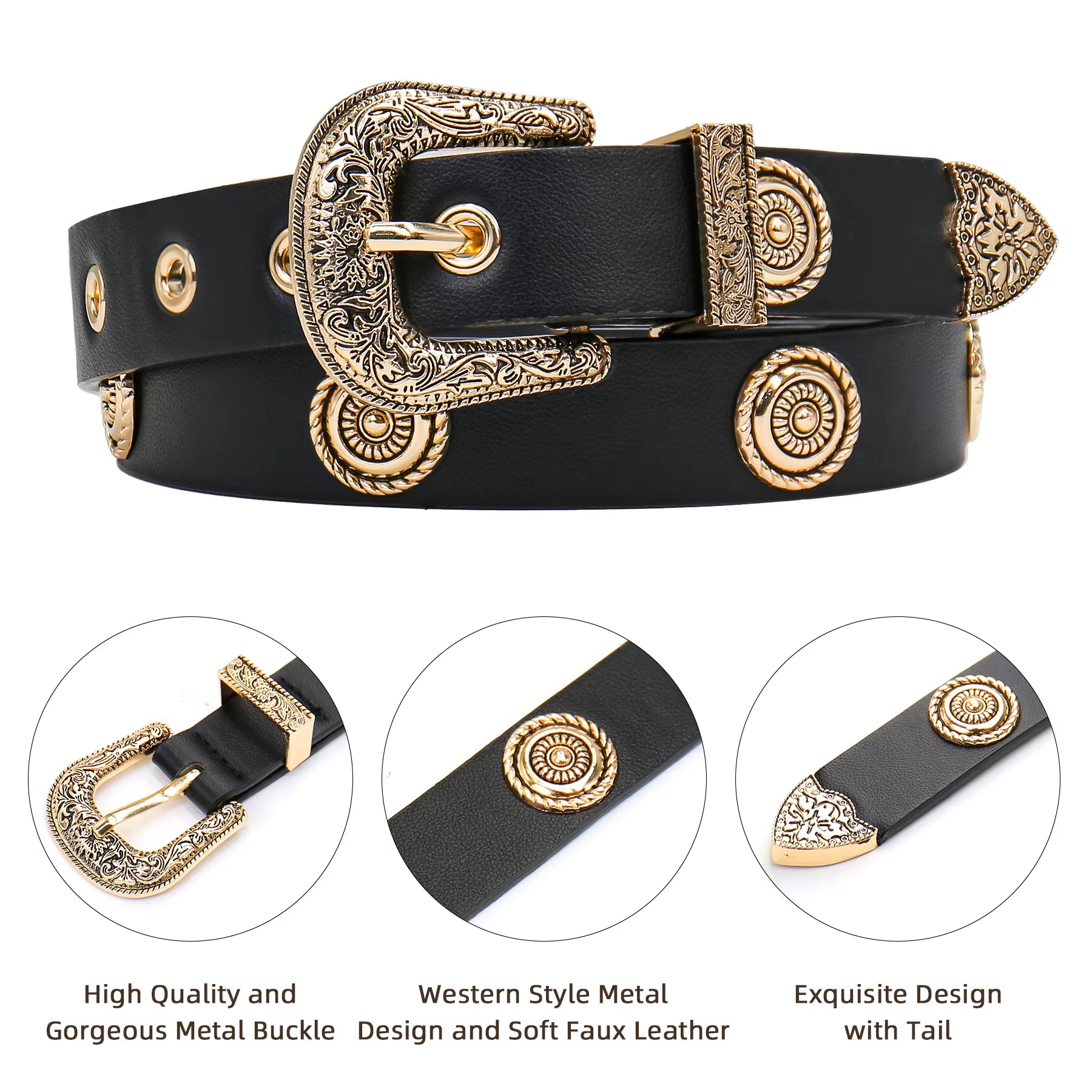 Women Studded Faux Leather Belt Fashion Western Punk for Womens Belts for Dresses Pants Jeans