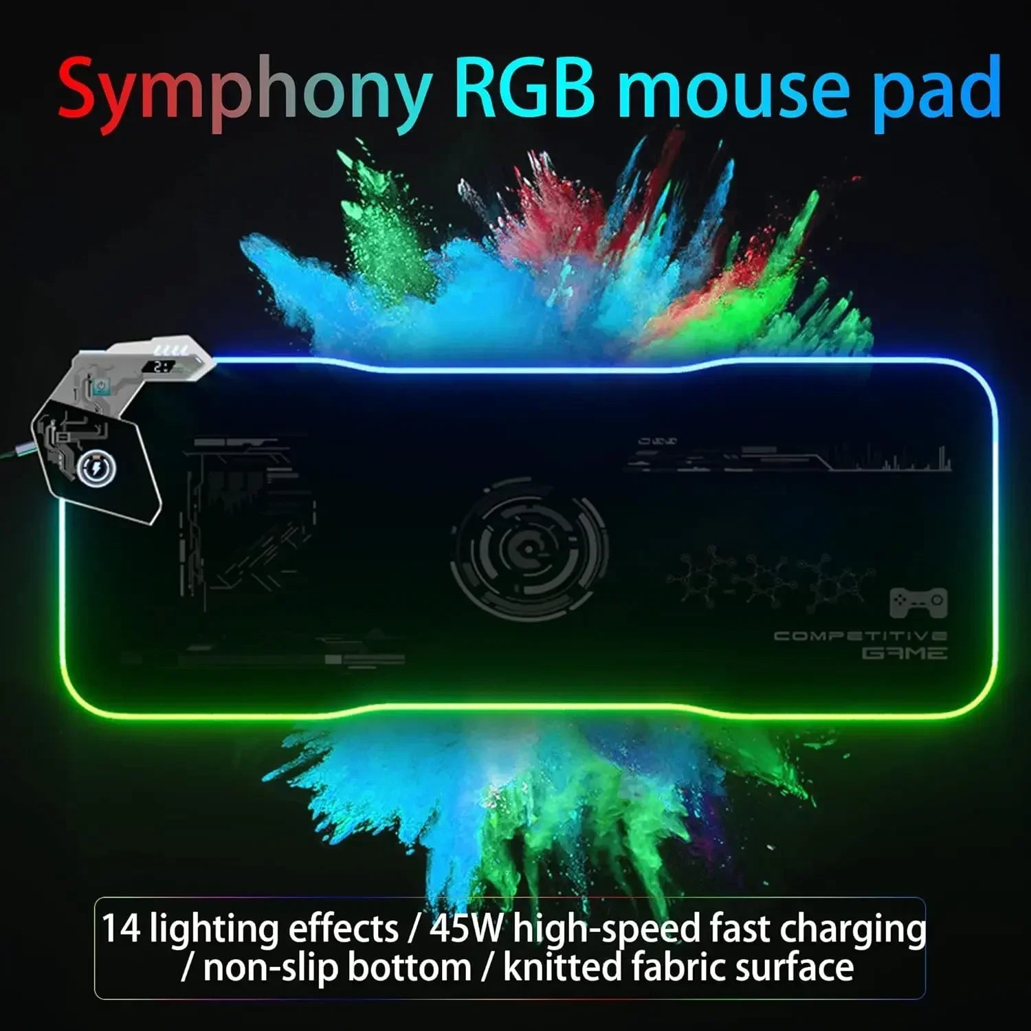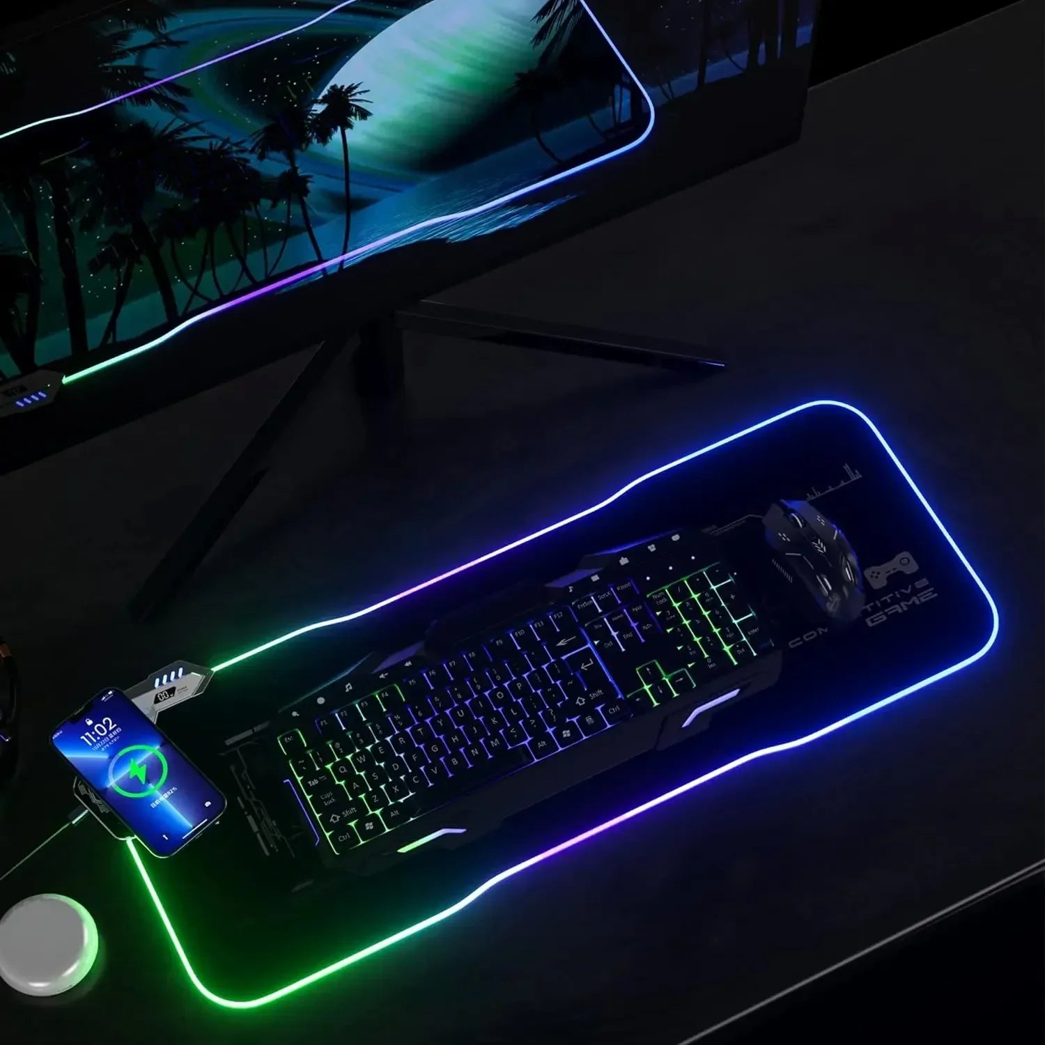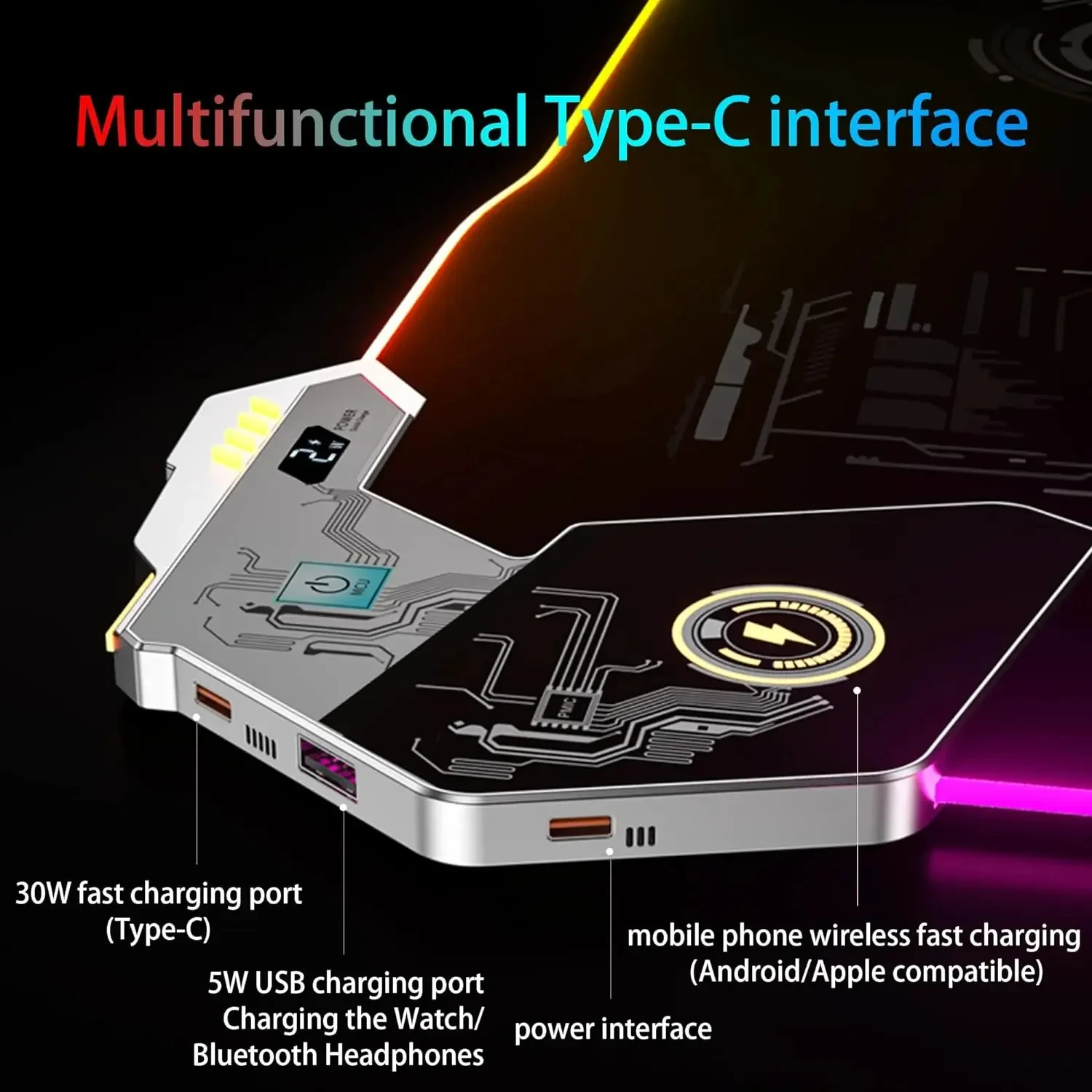 15W/30W Gaming Mouse Pad with Wireless Chargering, RGB Touch Illuminated Large Mousepad, 800X300 Keyboard Non-Slip Glowing Mat