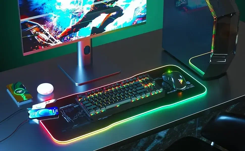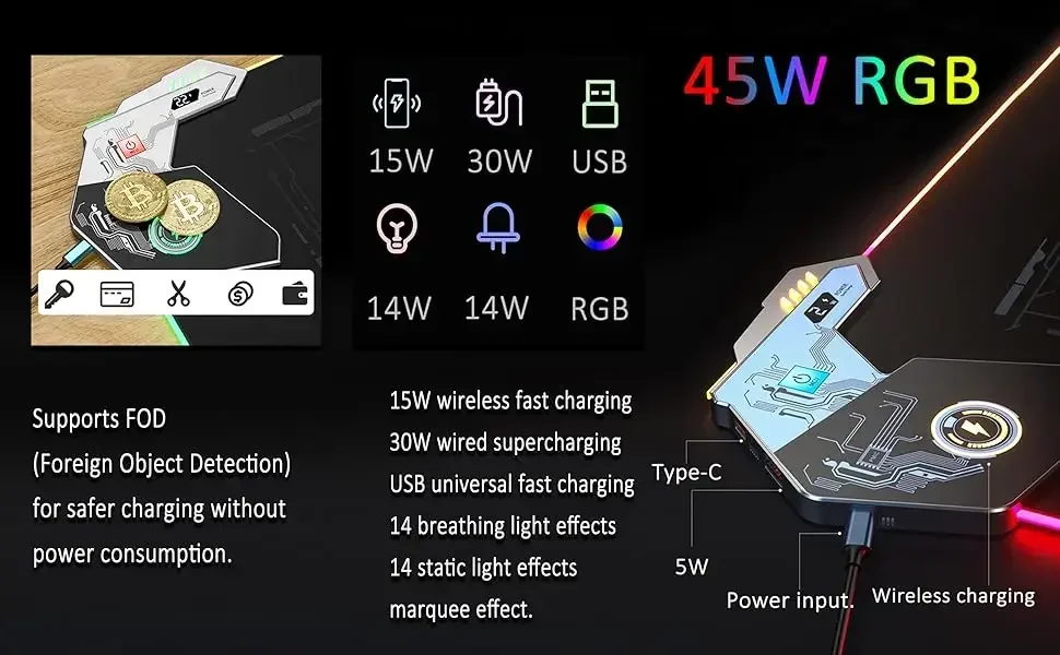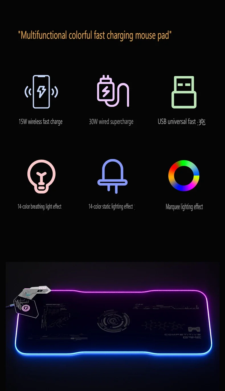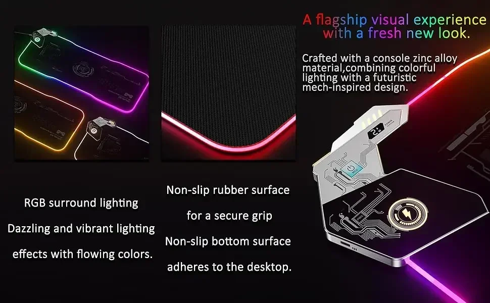 15W/30W Gaming Mouse Pad with Wireless Chargering, RGB Touch Illuminated Large Mousepad, 800X300 Keyboard Non-Slip Glowing Mat