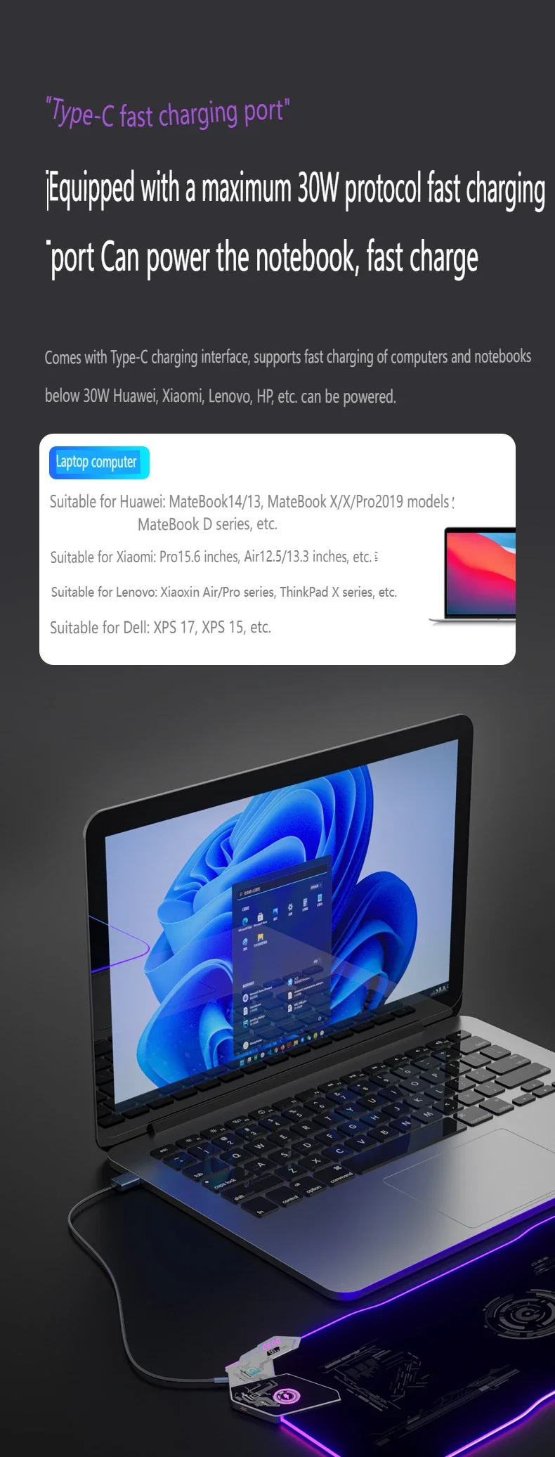 1. Two-in-one wireless charging mouse pad, which can charge the mobile phone while working on the computer, reducing the clutter of cables in the charging area