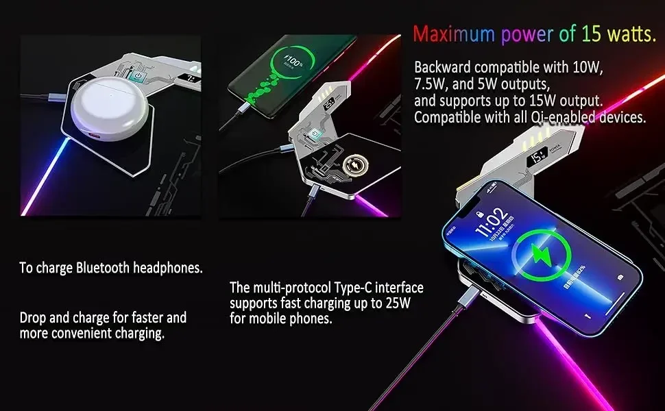 9. Support all devices equipped with Qi wireless charging protocol, such as watches, mobile phones, headsets, mice